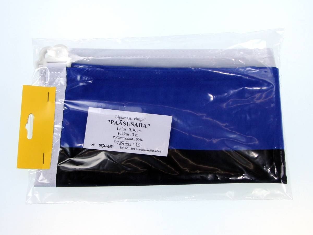 Pääsusabaga mastivimpel Eesti rahvusvärvides - huvitav alternatiiv tavapärasele vimpellipule. Mõõtmetega 30 x 300 cm. Valmistatud 100% polüesterkiust. Sobib kaunistama kodusid aastaringselt, kuid ei asenda kohustuslikul lipupäeval tavapärast riigilippu.