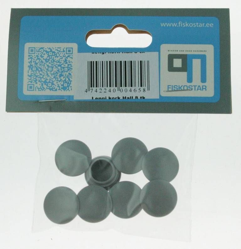 Plastist valmistatud halli pinnakattega lengikork kruviaukude katmiseks.