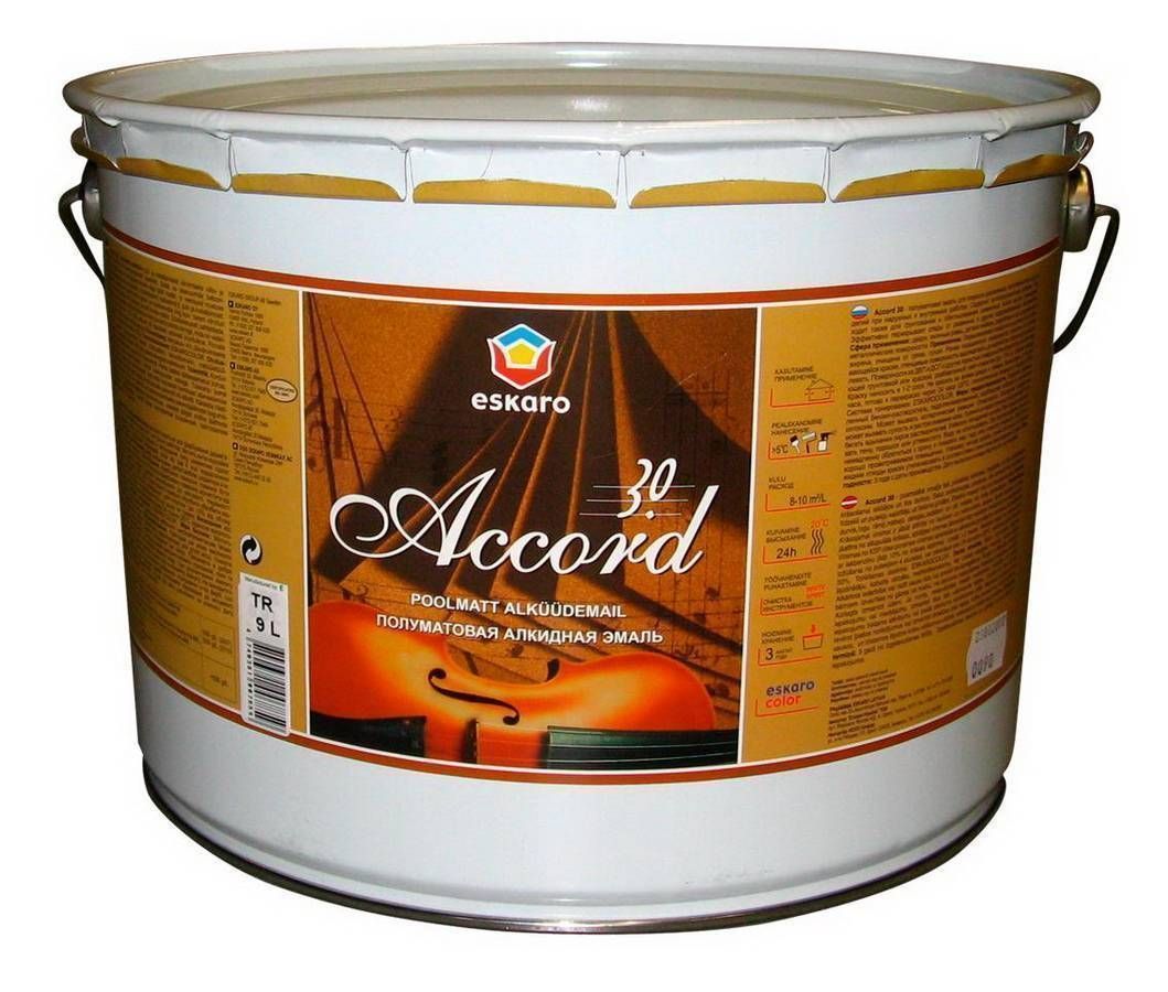 Eskaro Accord 30 on valge, poolmatt, universaalne alküüdemailvärv sise- ja välistöödel puit-, metall-, kivi- ja krohvpindade värvimiseks. Accord 30 on kõrge stabiilsusega värvitoonis ja -läikes. Moodustab kuivades kulumiskindla, hea löögikindlusega, sileda poolmati pinnakatte.