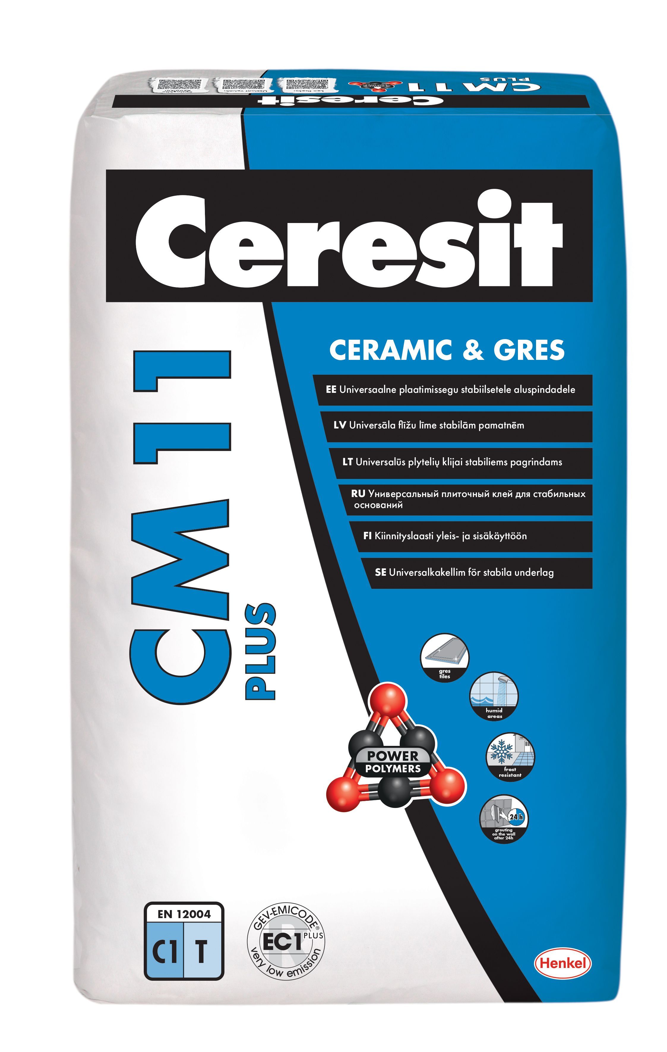 CERESIT® CM 11 kasutatakse keraamiliste plaatide (glasuur, terrakota), portselantoodete, tsement- ja kiviplaatide (va marmor) liimimiseks jäikadele aluspindadele, nagu betoon, tsement-tasanduskiht, tsementkrohv ja tsement-lubikrohv. Segu võib kasutada sisetingimustes. Deformeeruvate aluspindade puhul, nagu kipsplaat, puitlaastplaat, põrandaküte, rõdud, terrassid jne kasutage sobivaid Ceresit CM-liimsegusid.