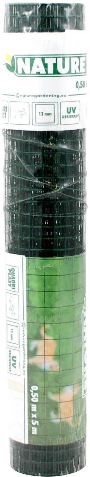 Nature metall võrk plastik kattega. Võrgusilm on ruudu kujuline ja võrgusilma suurus 13mm. Mõõdud: 5 x 0,5 m. Värvus roheline.