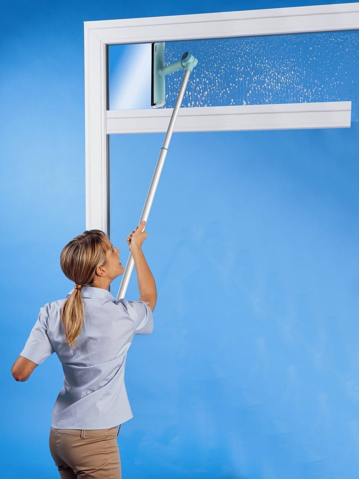 Leifheit aknapesija teleskoopvarrega. 3in1 funktsiooniga teleskoopvarrega aknapesija on mugav puhastamaks samaaegselt nii aknaklaasi kui ka aknaraami ja selle nurkasid ning seejärel pesija teisel pool asuva kummikaabitsaga pestud pinnad kuivatada. Lukustatav teleskoopvars ja liigendpea võimaldavad puhastada ka kõrgemaid ja raskemini ligipääsetavaid kohti lihtsa vaevaga. Liigendpea liigub kahest kohast, mistõttu on võimalik selle nurka sobitada kõikvõimalikesse asenditesse. Pesemisotsiku kate on valmistatud kvaliteetsest ja vastupidavast mikrofiiberkiust. Pesuotsiku laius 32 cm. Sobilik ka muude siledate või klaaspindade puhastamiseks – peeglid, keraamilised plaadid, dušikabiin, köögi tööpinna tagune sein jne. Oskuslikul kasutamisel ei jäta aknapesija puhastatavale pinnale triipe ega ebemeid ning ei tilgu ümbritsevatele pindadele. Teleskoopvars on pikendatav kuni 190 cm pikkuseks.
