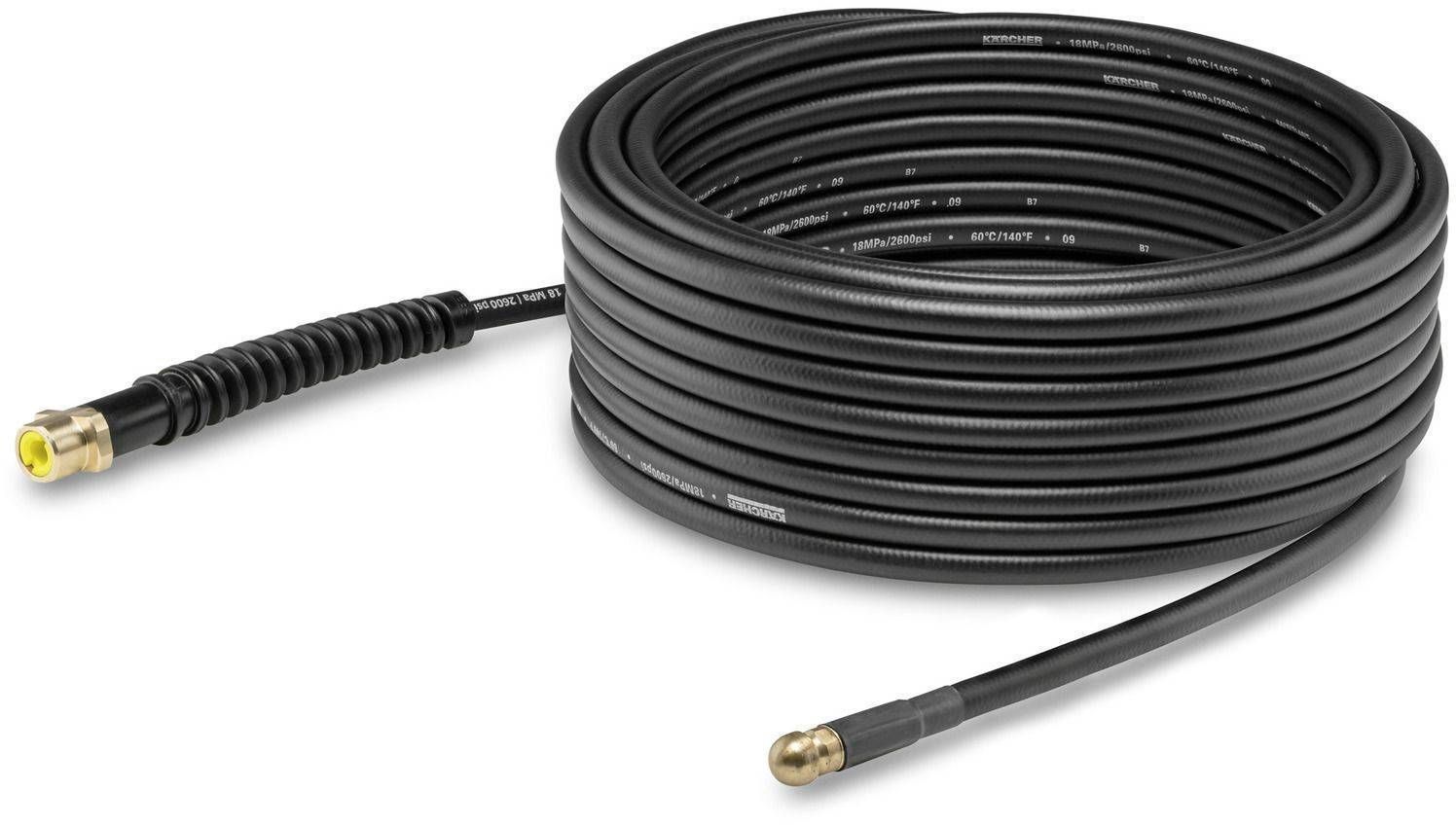 Voolikul olevad märgid ja märgistusrõngas näitavad, kui palju on voolik toru sisse liikunud. 15 m kvaliteetne, tekstiiltugevdusega voolik, millel on eriti lühike messingist otsik, mis võimaldab süsteemil torus hõlpsasti liikuda. Voolikul on väändumisvastase muhv ja messingist konnektor, mis tagavad vooliku vastupidavuse. Sobib kasutamiseks nii sise- kui ka välitingimustes koos kõigi kodumajapidamistele mõeldud Kärcheri K2–K7 seeria survepesuritega.