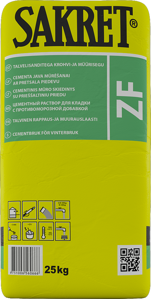 Sakret ZF on külmumisvastase lisandiga müüri- ja krohvisegu välis- ja sisetöödeks. Kasutamiseks kuni -10°C pakasega.