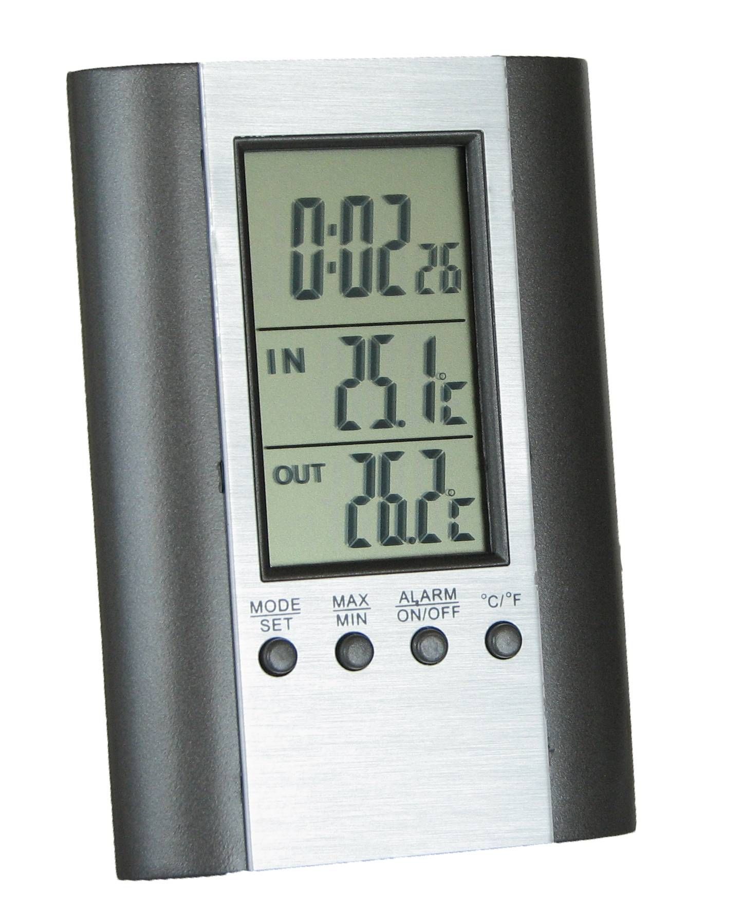 Provence digitaalne termomeeter + kell, mis võimaldab mõõta mõõta nii sise- kui välistemperatuuri. Kasutatakse AAA-tüüpi patareisid, patarei kuulub komplekti. Värvus hõbe/must.