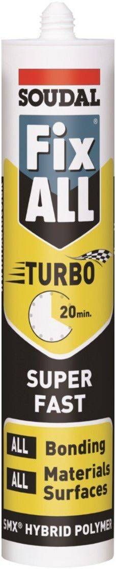Soudal Fix All Turbo on eriti kiire algnakkega kõrgekvaliteetne ühekomponentne SMX-polümeeridel põhinev liimhermeetik. Kiirelt kasutatav ja väga kiire lõppnakke saavutamisega. Väga suur lõplik nakketugevus. Suurepärane nake enamusele aluspindadele, ka veidi märgadele. Peale kõvenemist jäävalt elastne. Värvuskindel ning vastupidav UV-kiirgusele. Peale kõvenemist ülevärvitav vesidispersioonvärvidega.