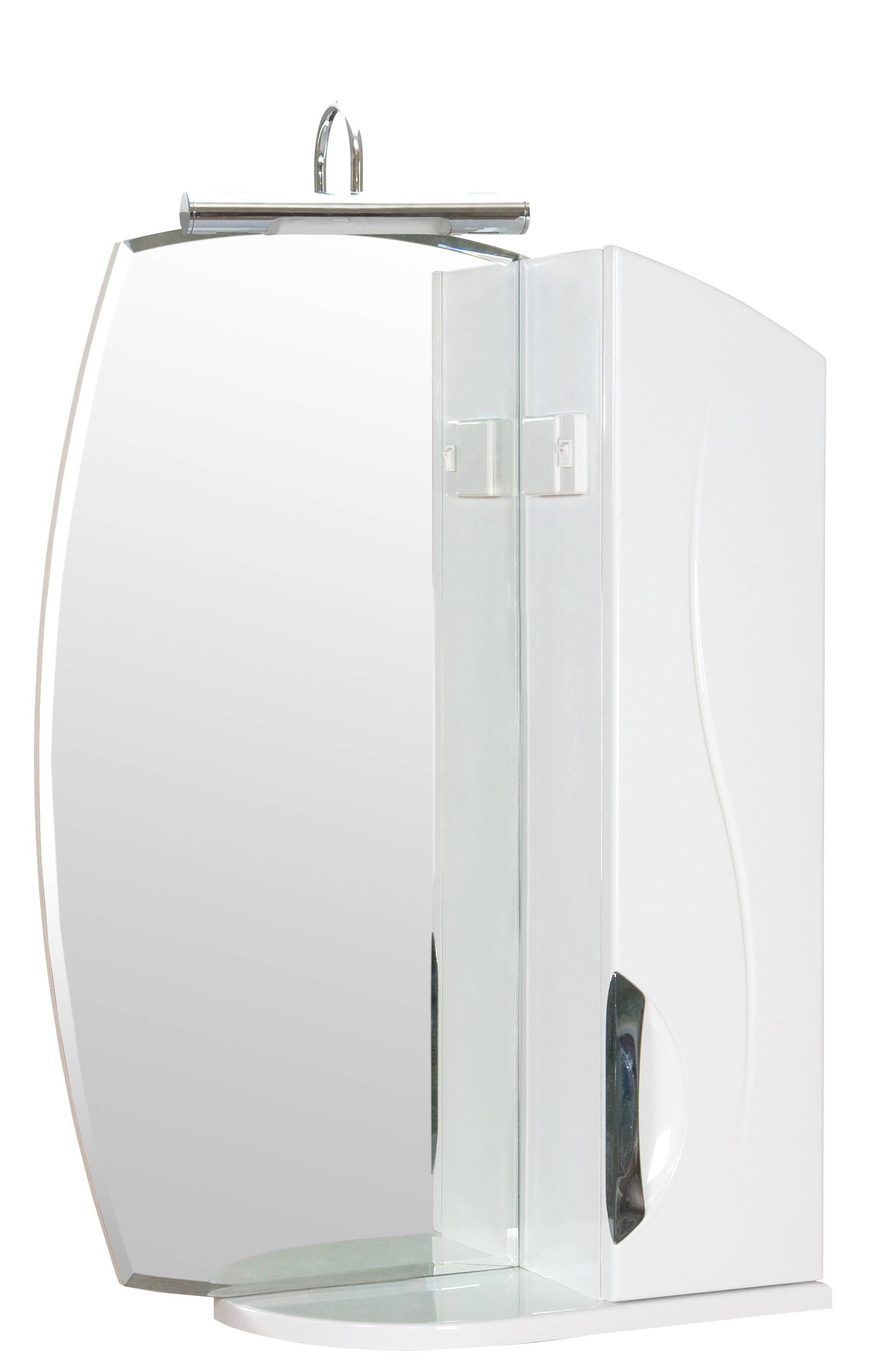 568 x 170 x 820 mm, ühe vaikselt sulguva uksega, paremakäeline, valge, niiskuskindel MDF, peegel 3 mm, komplektis valgusti, lüliti ja pistikupesa