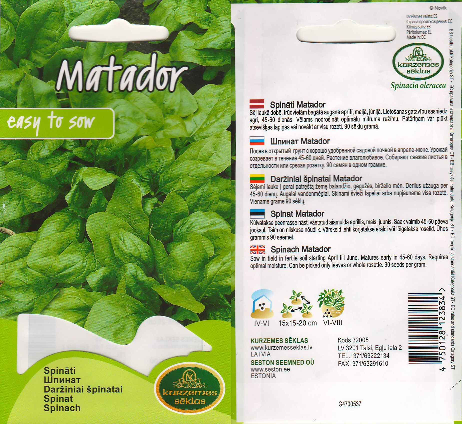 SEEMNED KURZEMES SEKLAS SPINAT MATADOR 5G