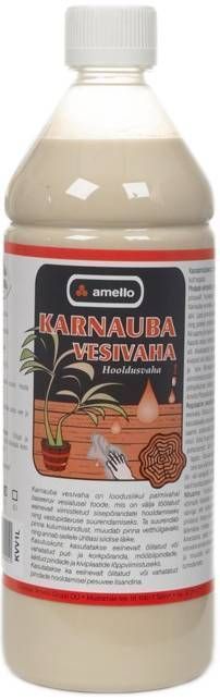 Amello Karnauba vesivaha on looduslikul palmivahal baseeruv vesialusel toode, mis on välja töötatud eelnevalt viimistletud sisepõrandate hooldamiseks ning vastupidavuse suurendamiseks. Vesivaha suurendab pinna kulumiskindlust, muudab pinna vetthülgavaks ning annab sellele ühtlasi siidise läike. Koostis: vesi, karnauba vaha.