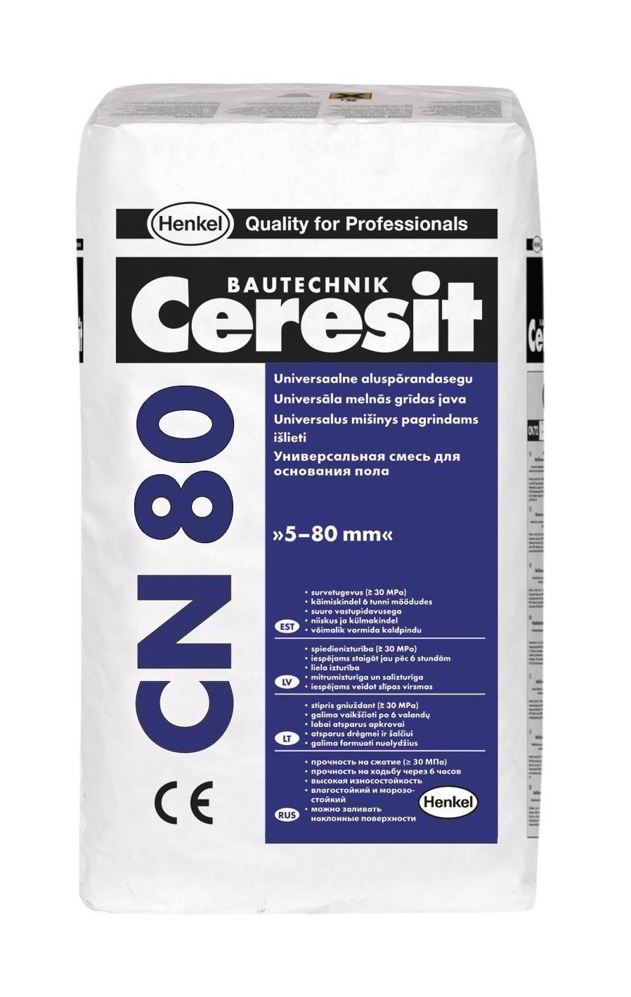 Kui segule doseerida ettenähtust vähem vett, siis omandab see tiheda ja elastse konsistentsi, mis võimaldab valmis segust vormida ka kaldpindu. CN 80 valatud segukihi (armeeritud või armeerimata) võib valada hoonete siseruumidesse, kus ei ole pidevalt liiga niiske. Valatud segukihile võib kinnitada keraamilisi plaate või valada vahe-kihte segudest Ceresit CN 69, CN 70, CN 72 või CN 76. CN 80 segu võib kasutada ka välitingimustes.