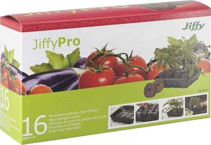 Jiffy turbatabletid läbimõõduga 50 mm. Turbasegu võrgus. Toasooja vett lisada 100ml tableti kohta. Paisunult läbimõõt 52 mm, kõrgus 60 mm. Ph 5,1-5,5. Võrk võimaldab juurtel segamatult areneda, ideaalne vee ja õhu läbitavus. Lihtne ja puhas kasutada. Pakendis 16 tk.
