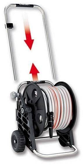 Claber voolikukäru komplekt Genius Compact Pronto 25 sisaldab 25 m 5/8" Silver Elegant voolikut, mis on UV - kindel, raskemetallide, vetika - ja ftalaadivaba, universaalset kraaniliitmiku, 4 kiirliitmikku, pihustiotsik, ABS voolikupool, millel on pöörlev kerimisnupp ja pikendatav käepide. Kärul tugevdatud alumiiniumraam.