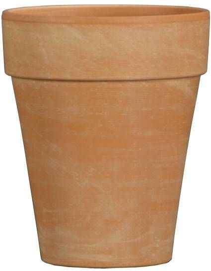 Spang dekoratiivne püstise kujuga heledast savist lillepott siseruumidesse. Läbimõõt 16,7cm.