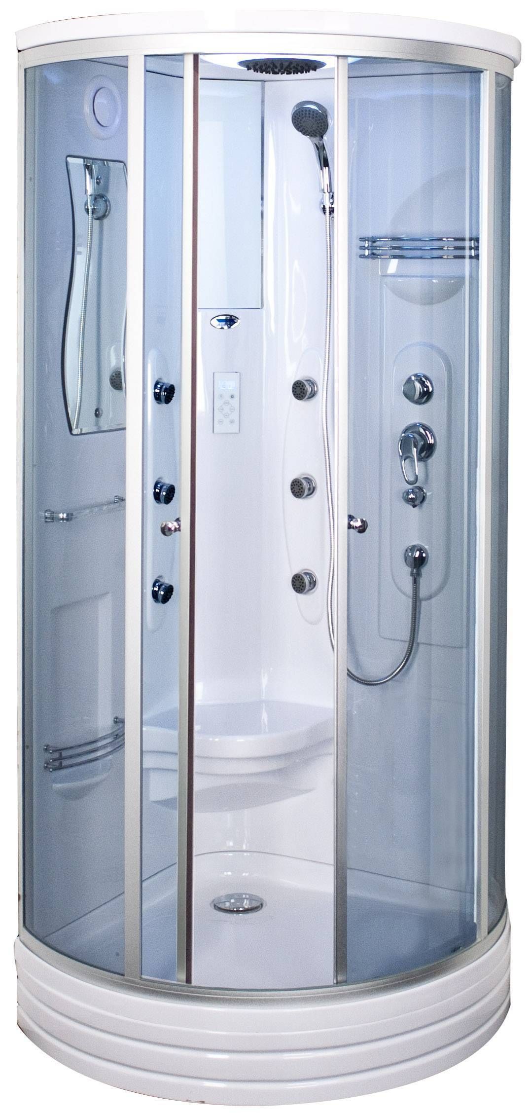 • Madala alusvanni, liuguste ja katusega massaažikabiin, mille mõõtmed 92 x 92 cm, kõrgusega 217 cm. • Klaasid on 6mm toonitud turvaklaasist. Värvitud alumiiniumprofiil, hõbedane. • 6 seljamassaaži düüsi, termostaatsegisti, üla- ja käsidušš. Lisaks värvimuutev LED-valgustus, puutetundlik LED-ekraaniga juhtpult. • Metallraamil valge akrüülvann, mille kõrgus on 15 cm. • 14-päevane tagastusõigus. • HANKIJA LAOST TELLITAV TOODE