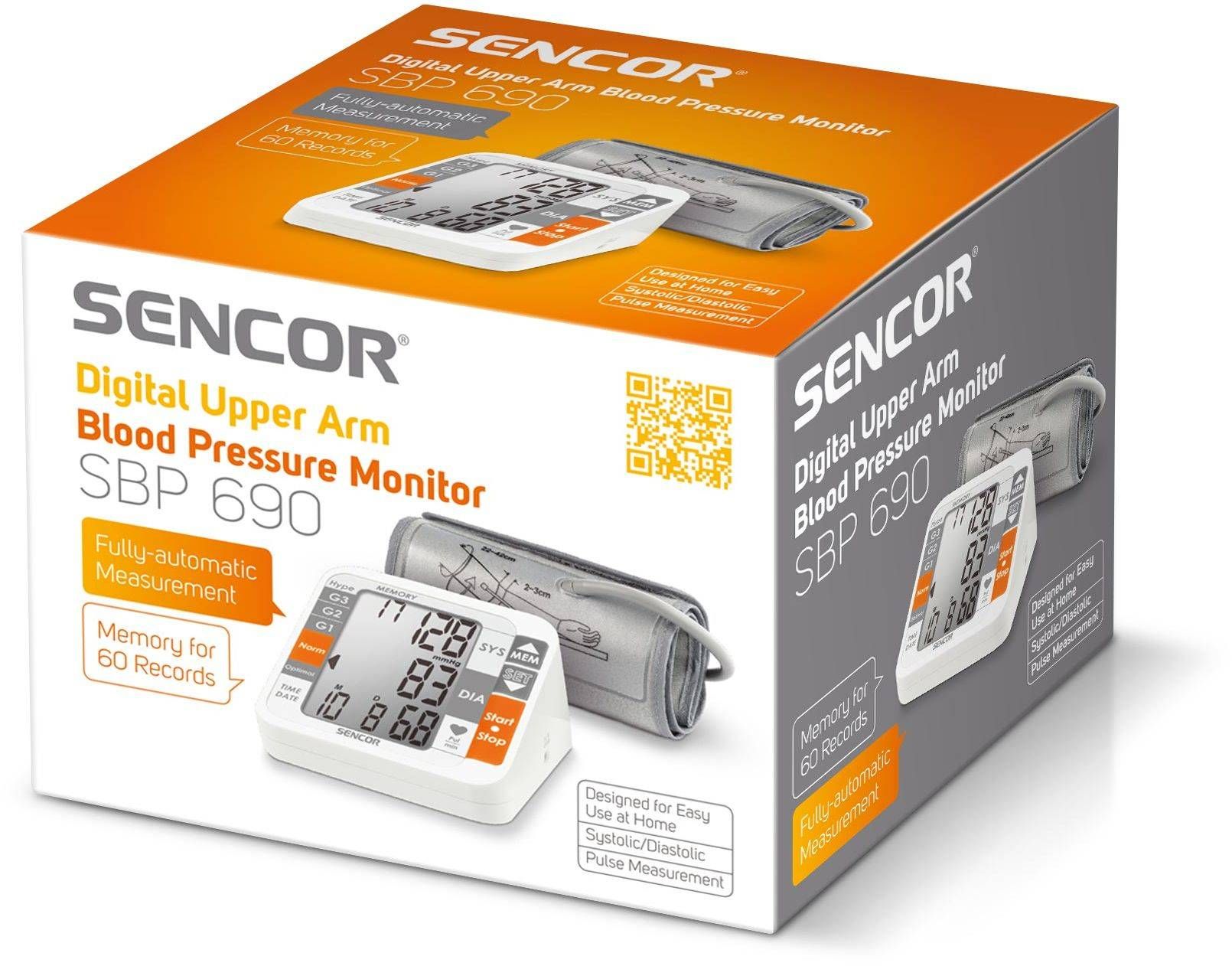 Sencor digitaalne vererõhumõõtja SBP690, mis on mõeldud koduseks kasutuseks. Vererõhumõõtja on varustatud suure 61 x 93 mm LCD-ekraaniga. Mõõdab nii süstoolset kui diastoolset vererõhku ning südame pulsisagedust. LCD ekraanil kuvatakse vererõhu graafiline pilt (kõrge/keskmine/raske hüpertensioon). Vererõhumõõtjal on olemas ka südame arütmia hoiatuse indikaator. Mälu kuni 60 mõõtmist (ühe kasutaja jaoks), sealhulgas mõõtmise kuupäeva ja kellaaja salvestamine. Mõõtmise täpsus: +/- 3 mmHG, impulss +/- 5%. Vedelkristallekraanil kuvatakse automaatvigade diagnostika. Automaatne väljalülitamine kui seadet ühe minuti jooksul ei kasutata pärast sisselülitamist. Vererõhu mõõtmise salvestused jäävad mällu ka pärast aku väljavahetamist. Vererõhumõõtja on varustatud aku täituvuse indikaatoriga. Vererõhumõõtja töötab 4 x AA-patareidel ja mõõtmed on 120 x 140 x 70 mm.