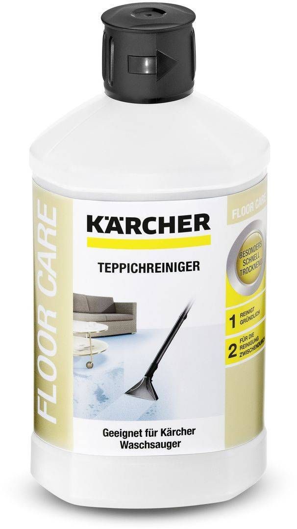 Kärcher vaibapuhastusvahend. Kiirelt kuivava koostisega vedel puhastusvahend kiireteks puhastustöödeks. Sobib vaipadele, polstrile, autoistmetele jne. Pakendis 1 L.