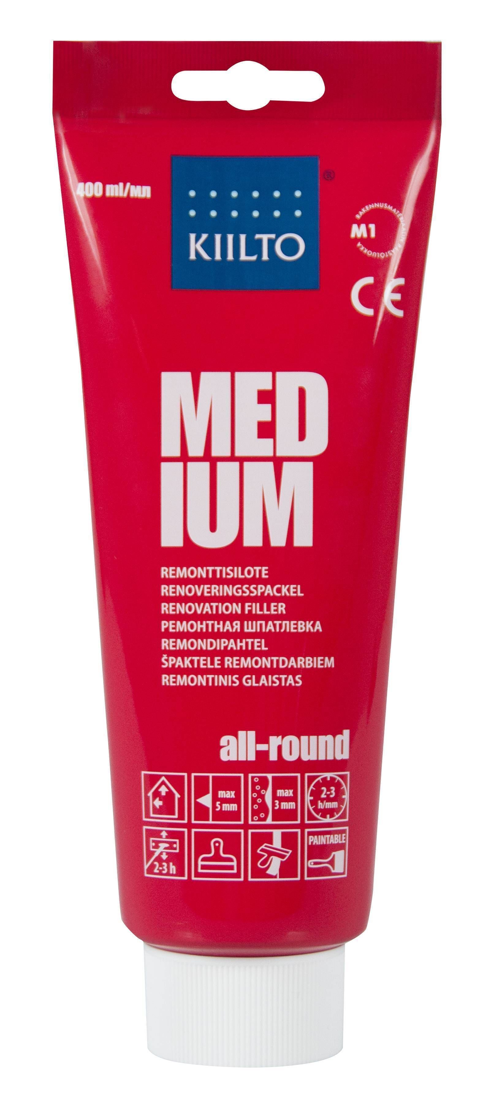 Kiilto Medium Renovation Filler on veepõhine valmispahtel kuivade siseruumide seinte ja lagede viimistlemiseks. Nakkub hästi ka värvitud pindadega. Sobib kipsplaatide ja muude ehitusplaatide, aga ka betoon-, krohv- ja tasandusseguga töödeldud pindade viimistlemiseks. Samuti sobib pahtel vuugilindi kinnitamiseks ning kriimustuste ja max 5 mm aukude parandamiseks. Vastab standardite EN 13963:2005 ja EN 15824:2009 nõuetele.