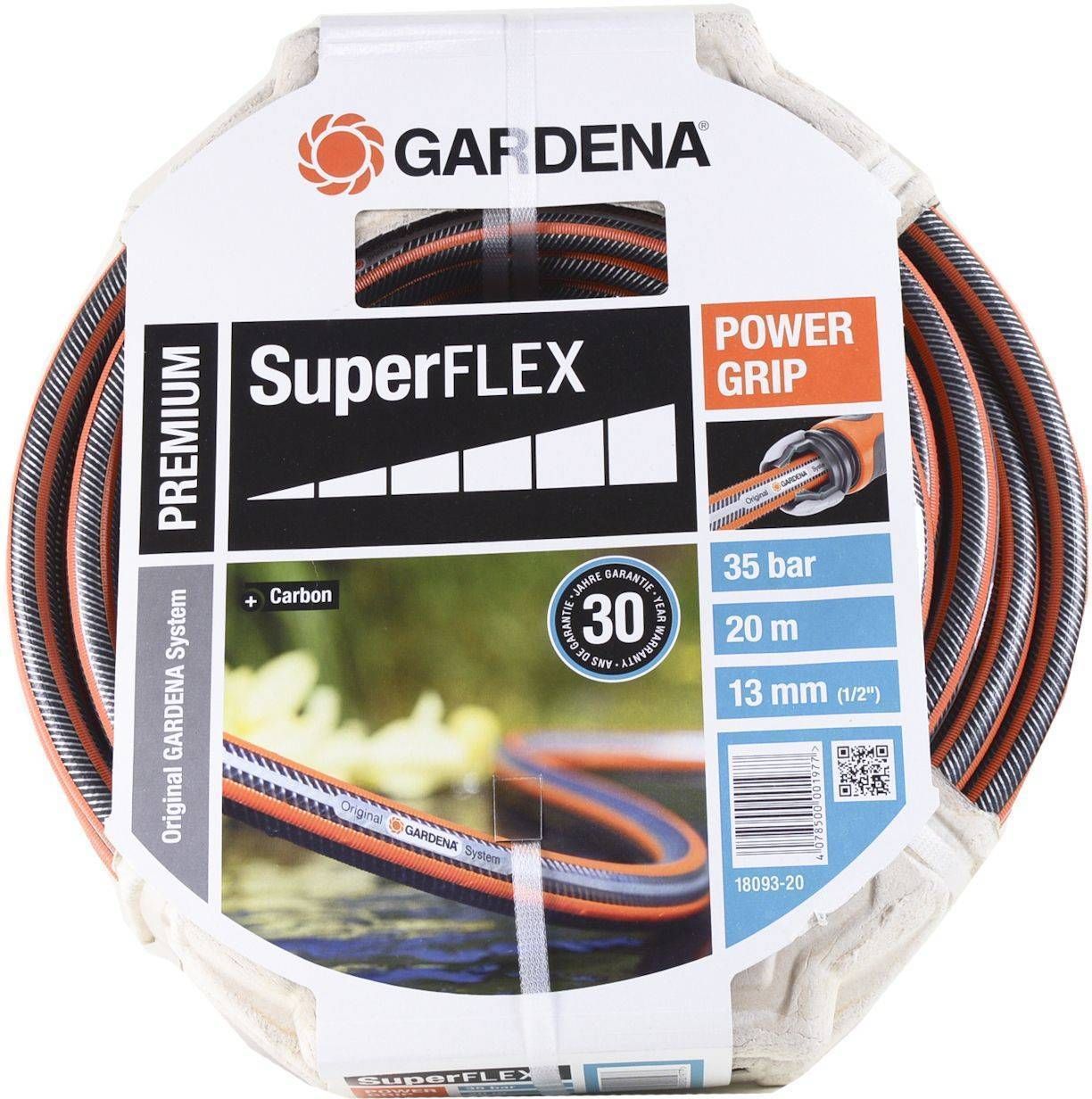 Gardena Premium SuperFLEX voolik Power Gripi profiiliga, mis kindlustab vooliku ja voolikuliitmiku täiusliku ühenduse. Tänu uuele tehnoloogiale lukustuvad need nagu hammasrattad. Power Gripi profiil võimaldab seda, mida paljud aiaomanikud on juba ammu soovinud: usaldusväärne ühendus ja täiuslik hoidejõud. Kõrgema profiili positiivne kõrvalmõju: voolikut on lihtsam kerida ja see jookseb hästi. Tänu tihedale ja kvaliteetsele spiraalvõrgust tekstiilile, kus kaks spiraali töötavad vastassuundades, on voolik eriti survekindel ja säilitab oma kuju, olles samas kasutamisel kõige paindlikum Comfort FLEX voolik. See on võimalik tänu spiraalide suuremale tihedusele, mis muudab vooliku paindlikumaks ja hõlpsamini käsitsetavaks. See ei lähe sõlme ega keerdu. Vajadusel saab seda täiendada Original Gardena System tarvikute ja toodetega. Need on ideaalsed vahendid, mille kasutamine aias on lihtne ja paindlik. Ei sisalda ftalaate ega raskemetalle ning on loomulikult UV-kindel ja varustatud läbipaistva ja mustusekindla välisvoolikuga. Tänu paksudele seintele on see eriti turvaline, tugev ja vastupidav. Purskesurve on 35 baari ja garantii 30 aastat.
