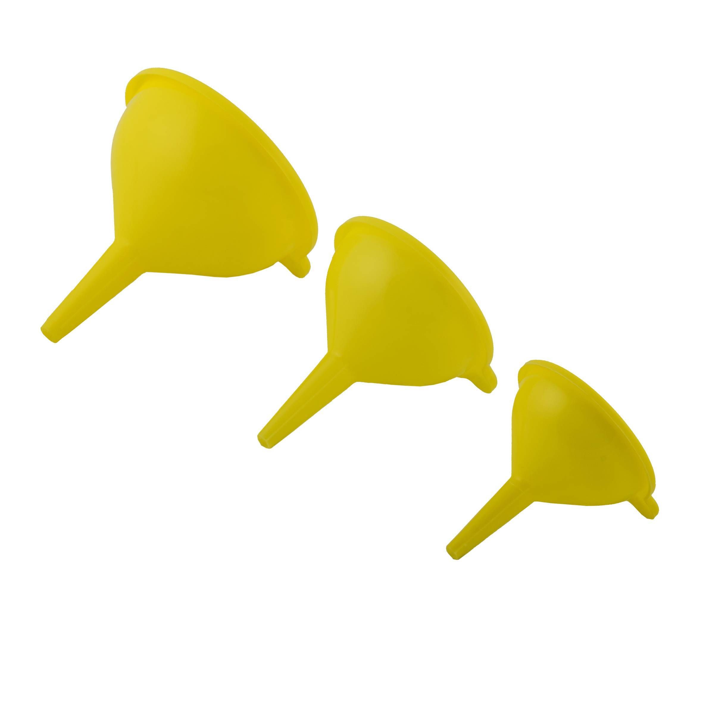 • Kolmes erinevas suuruses plastikust lehtrite komplekt.