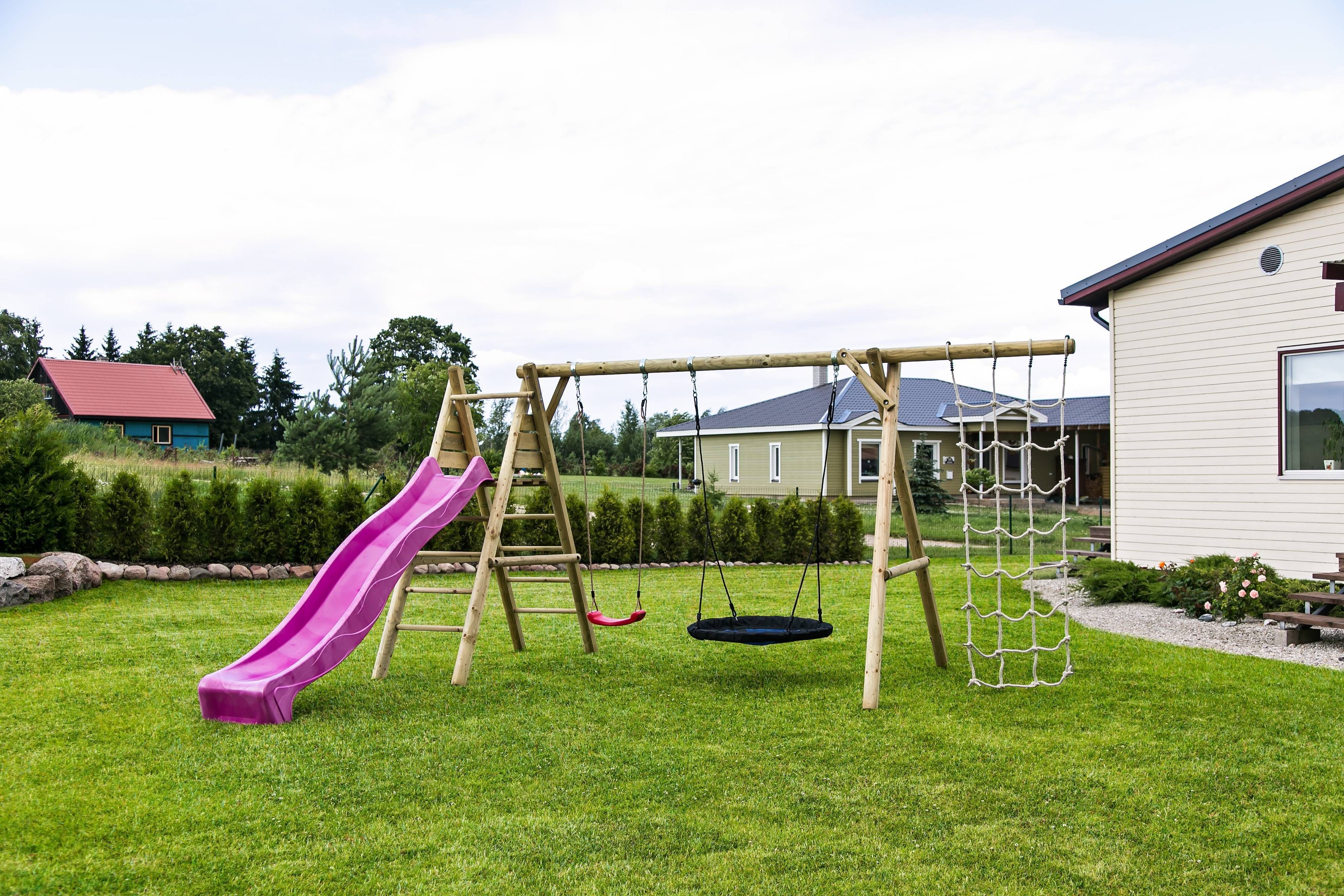 | Komplekti kuulub | 1 tk ronimisvõrk, 1 tk punane kiigeiste, 1 tk sinine pesakiik Swibee, 4 tk kiigeklambrid, puitosa, puitosa komplekteerimseks vajalikud kruvid ja poldid |