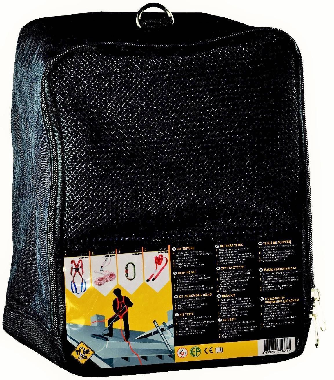 Top Lock turvakomplekt, kuhu kuulub kaks karabiini, täisturvarakmed, kukkumise pidurdaja ja 10 meetrine liuglukuga köis.