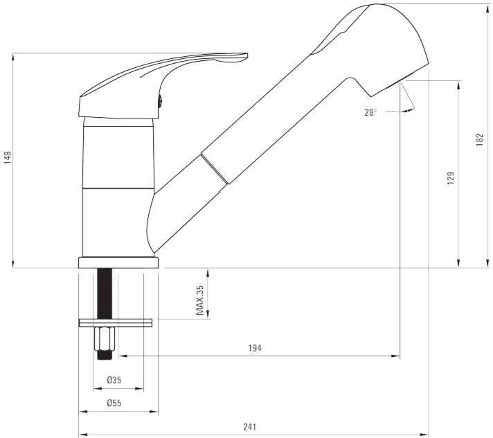 Deante köögisegisti Pepe on käsidušiga kangsegisti, millel on väljatõmmatav otsik ja veekulu piiraja 9-15 l/min. Segisti värvus on graniit liiv. Komplekti kuuluvad ühendustarvikud: survevoolikud 3/8" x M10 x 45 cm 2 tk.