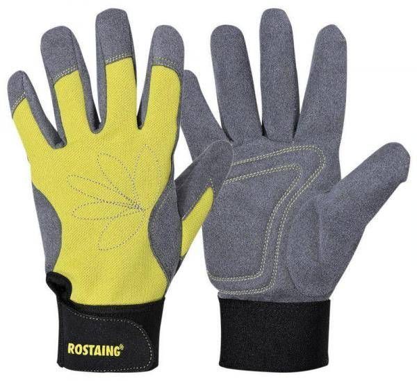 Muruniitmiseks ja hekipügamiseks sobivad sünteetilisest nahast naiste kindad, peopesa on läbiõmmeldud pehmendustega ja vähendab vibratsiooni, käeselg elastaanist.