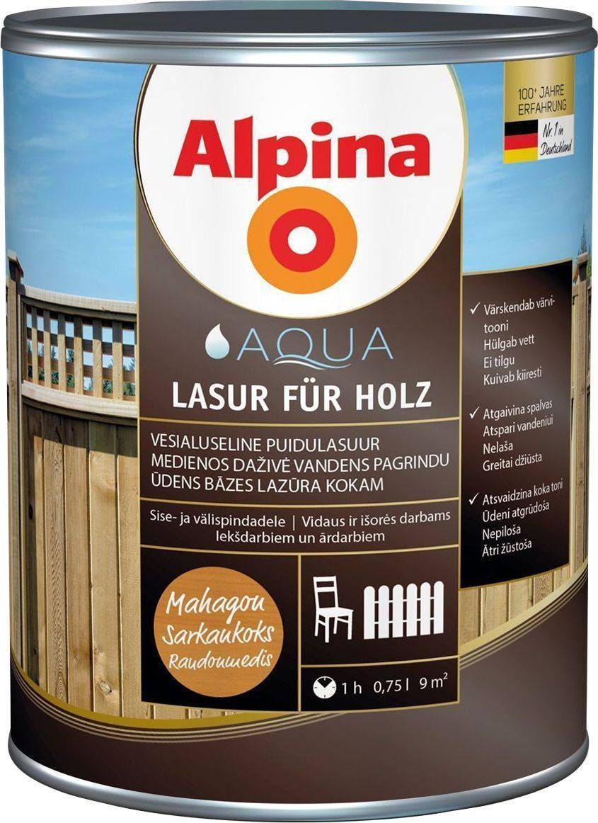 PUIDUKAITSEVAHEND ALPINA AQUA LASUR FÜR HOLZ 0,75L MAHAGON