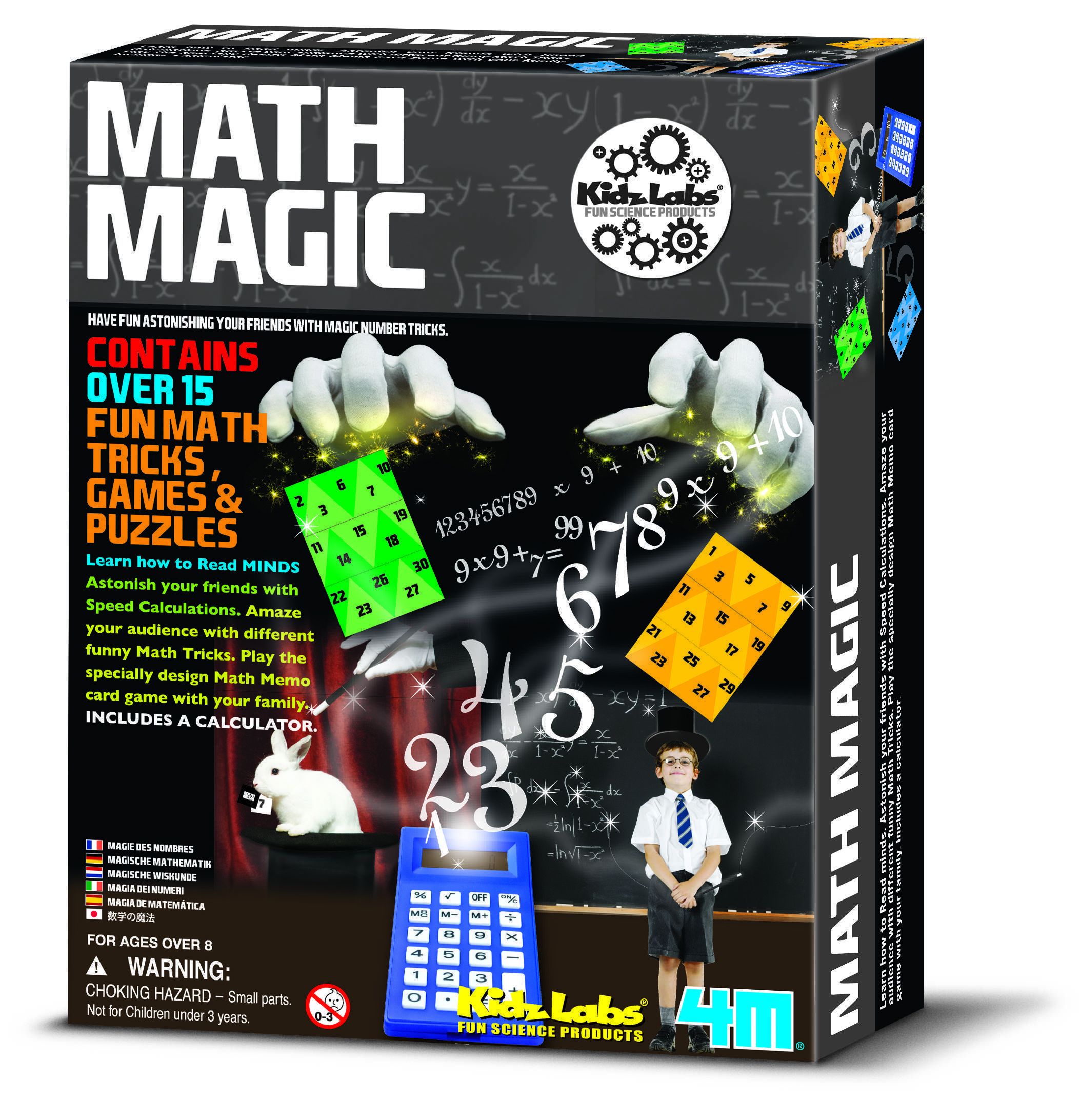 Lõbusta oma sõpru hämmastavate numbritrikkidega. Komplekt sisaldab erinevaid matemaatilisi nippe, trikke ja mõistatusi. Õpi mõtteid lugema ja üllata sõpru kiirarvutamise oskusega. Komplekti kuulub ka kalkulaator.