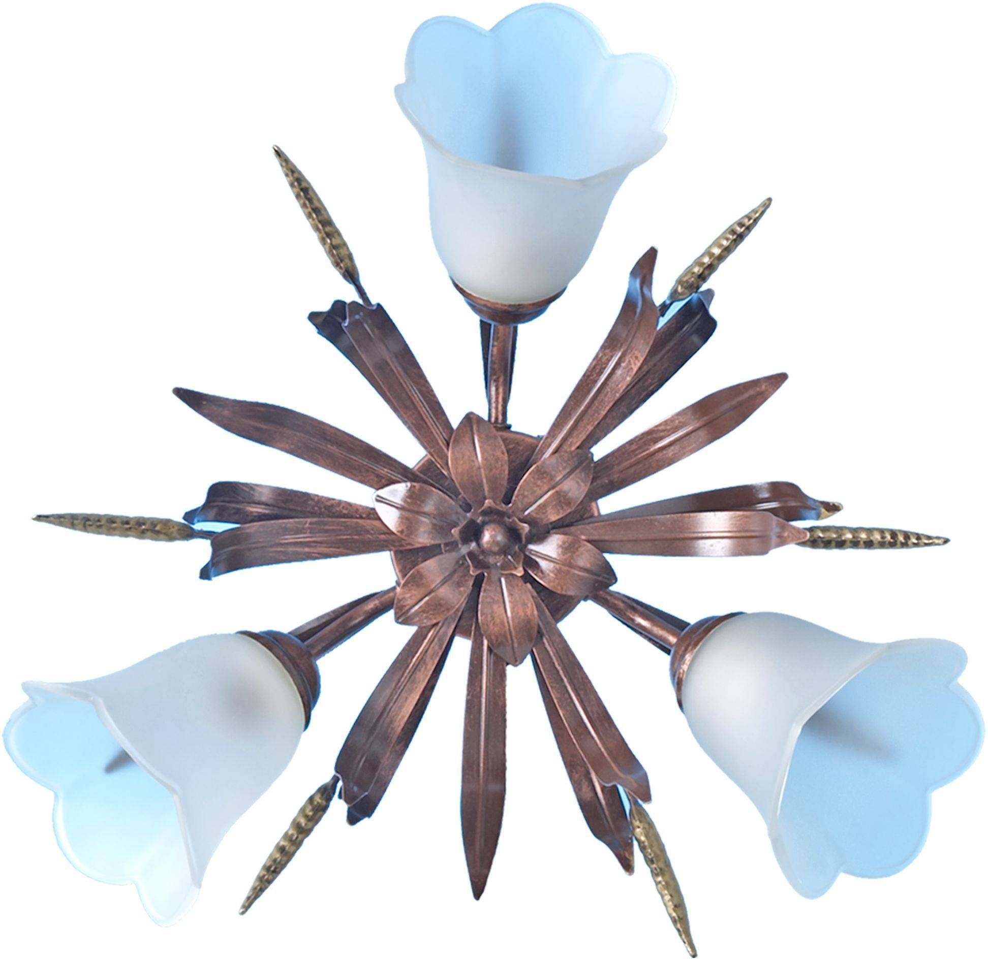 PinxDisain laelambil Gloria on kolm E14 lambihoidja. Laelambi võimsus on 3 x 40 W. Lambil on pruuniks värvitud metallist karkass.