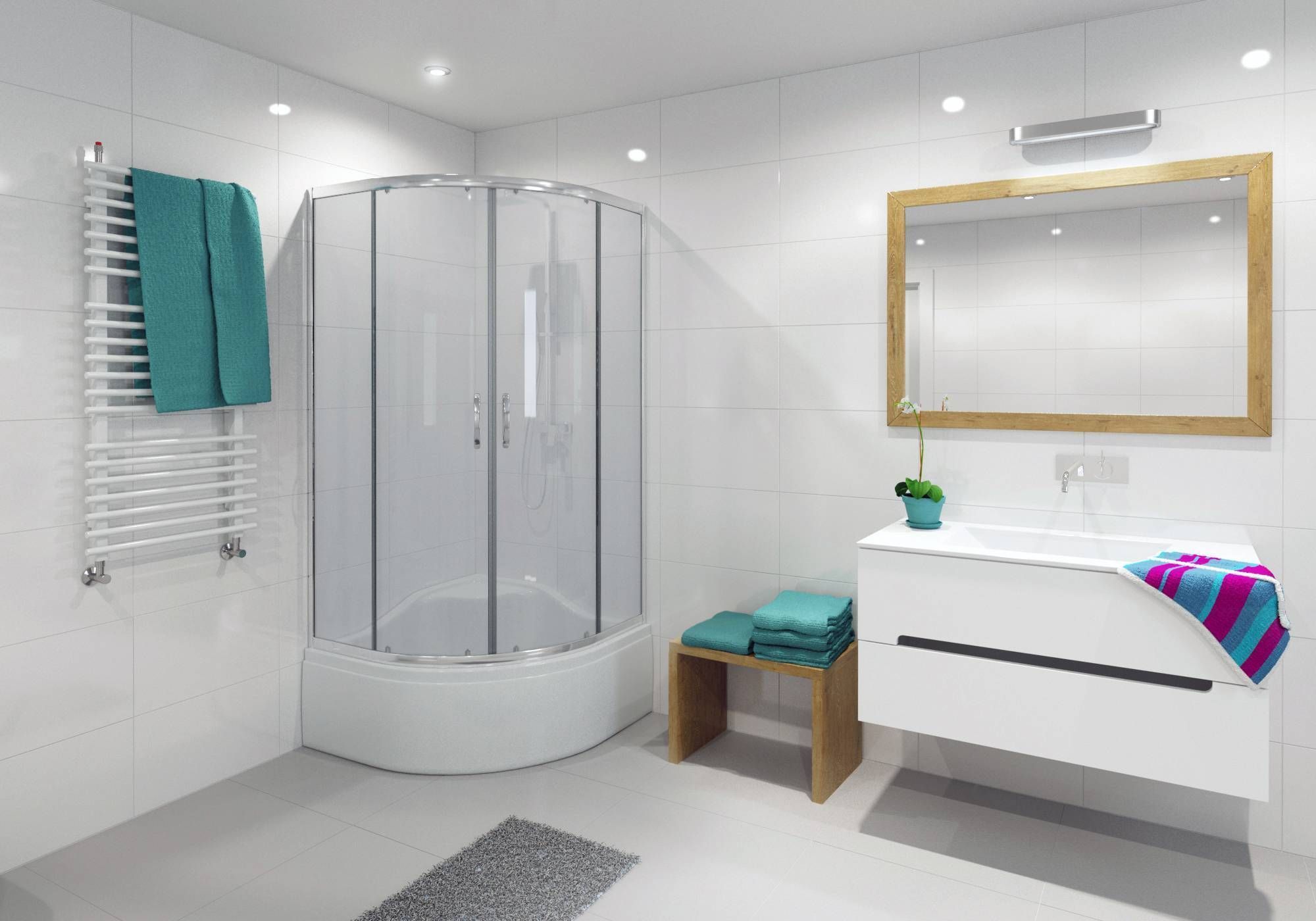 Durasan PARMA CLEAR on alumiiniumraamiga kaarekujulised dušinurga klaasseinad, mille mõõtmed on 90 x 90 x 165 cm.