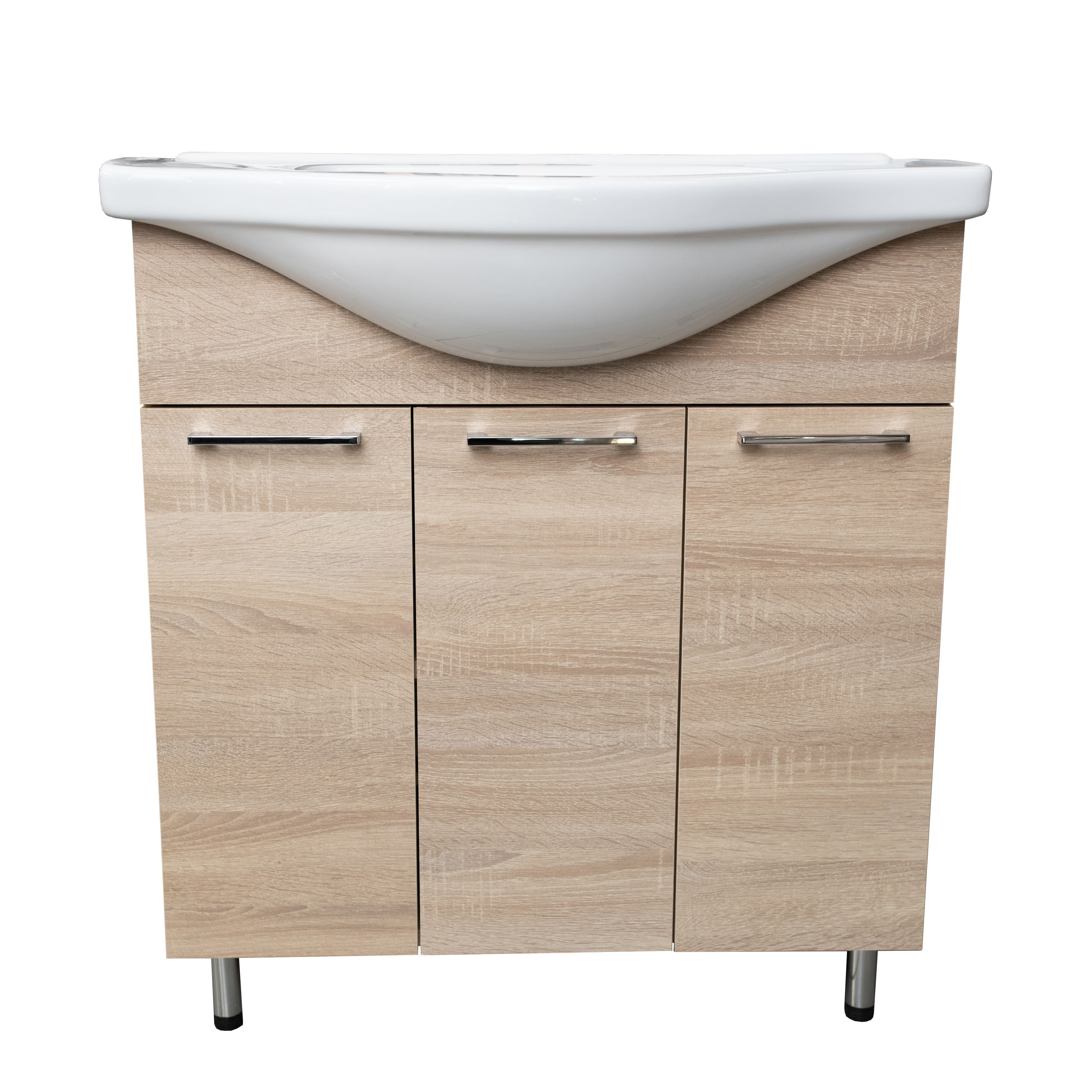 • Vannitoakapp kolme vaikselt sulguva uksega. • Komplekti kuulub keraamiline valamu. • Valmistatud lamineeritud puitlaastplaadist. • Mõõtmed 75,5 x 49 x 81 cm. • 14-päevane tagastusõigus.
