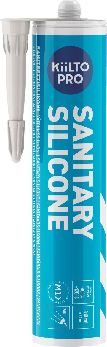 Kiilto Pro sanitaarsilikoon on ühekomponentne neutraalne silikoon. Vastab standardi EN 15651-3:2012 nõuetele. Ei sobi kasutamiseks akvaariumides või looduskivil, nt marmoril. Peeglite ja tualetipottide paigaldamiseks soovitame Kiilto Masa liimi- ja tihendusmassi.