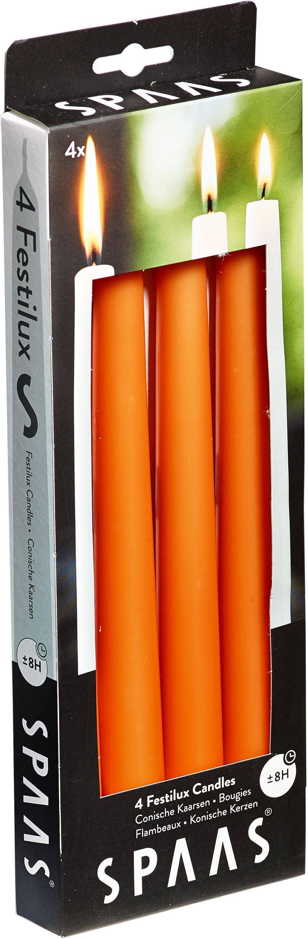 Antiikküünal Festiluxi värvuseks on oranž, kõrgus 25 cm, põlemisaeg ~8 tundi, pakis 4 tk. Materjal parafiini ja steariini segu.