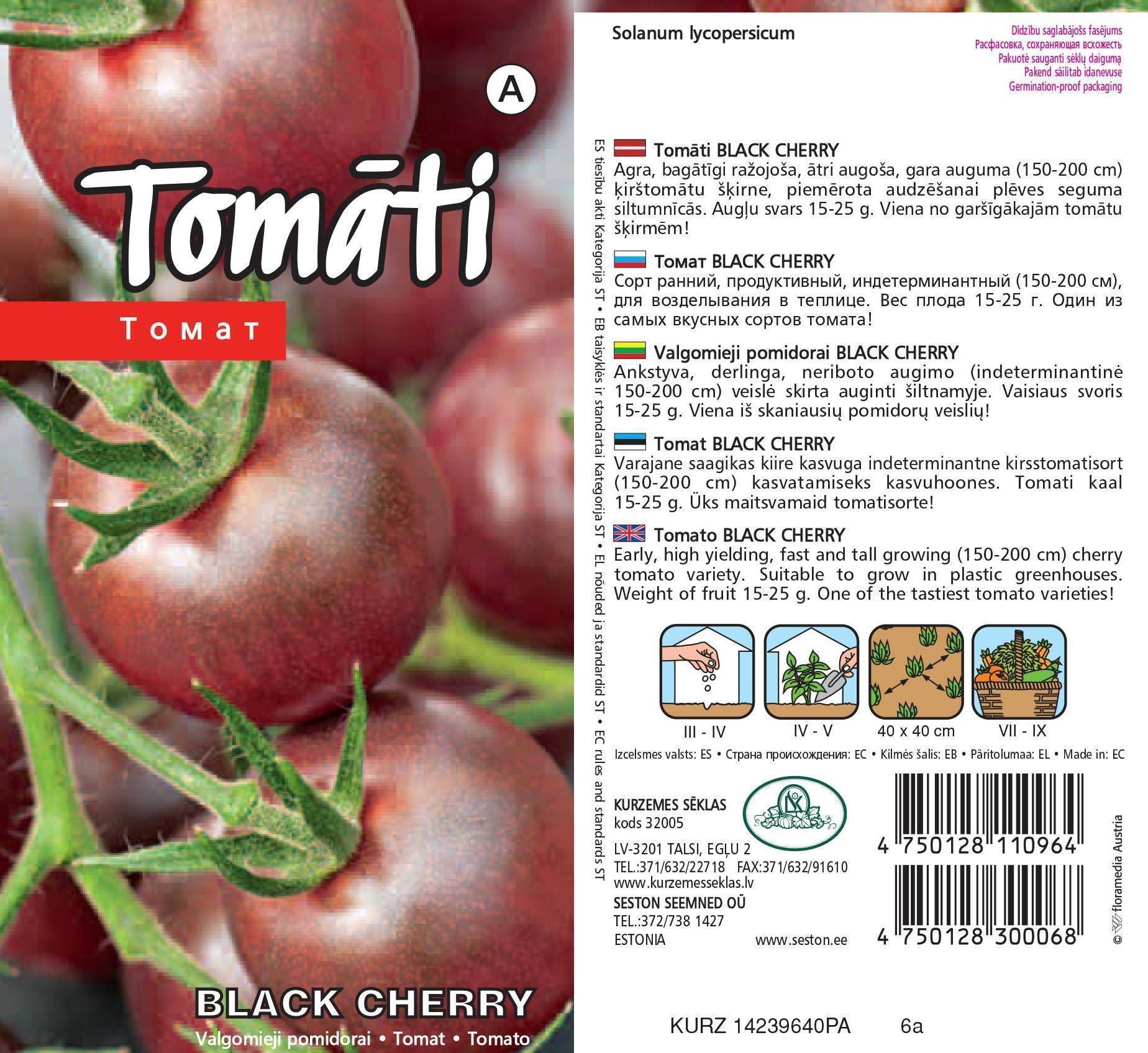 KÖÖGIVILJASEEMNED KURZEMES SEKLAS TOMAT BLACK CHERRY 0,2G