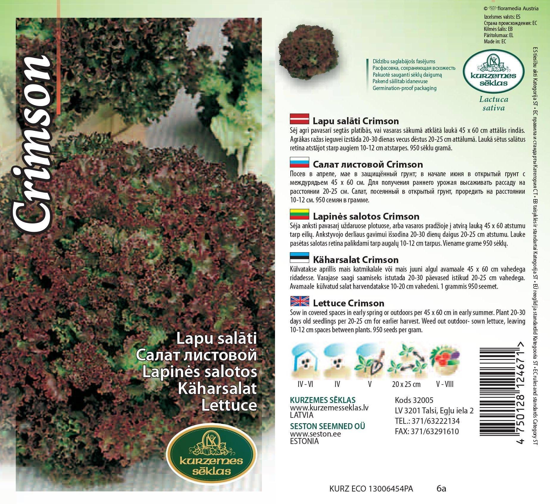 KÖÖGIVILJASEEMNED KURZEMES SEKLAS SALAT LOLLO ROSSA 1G