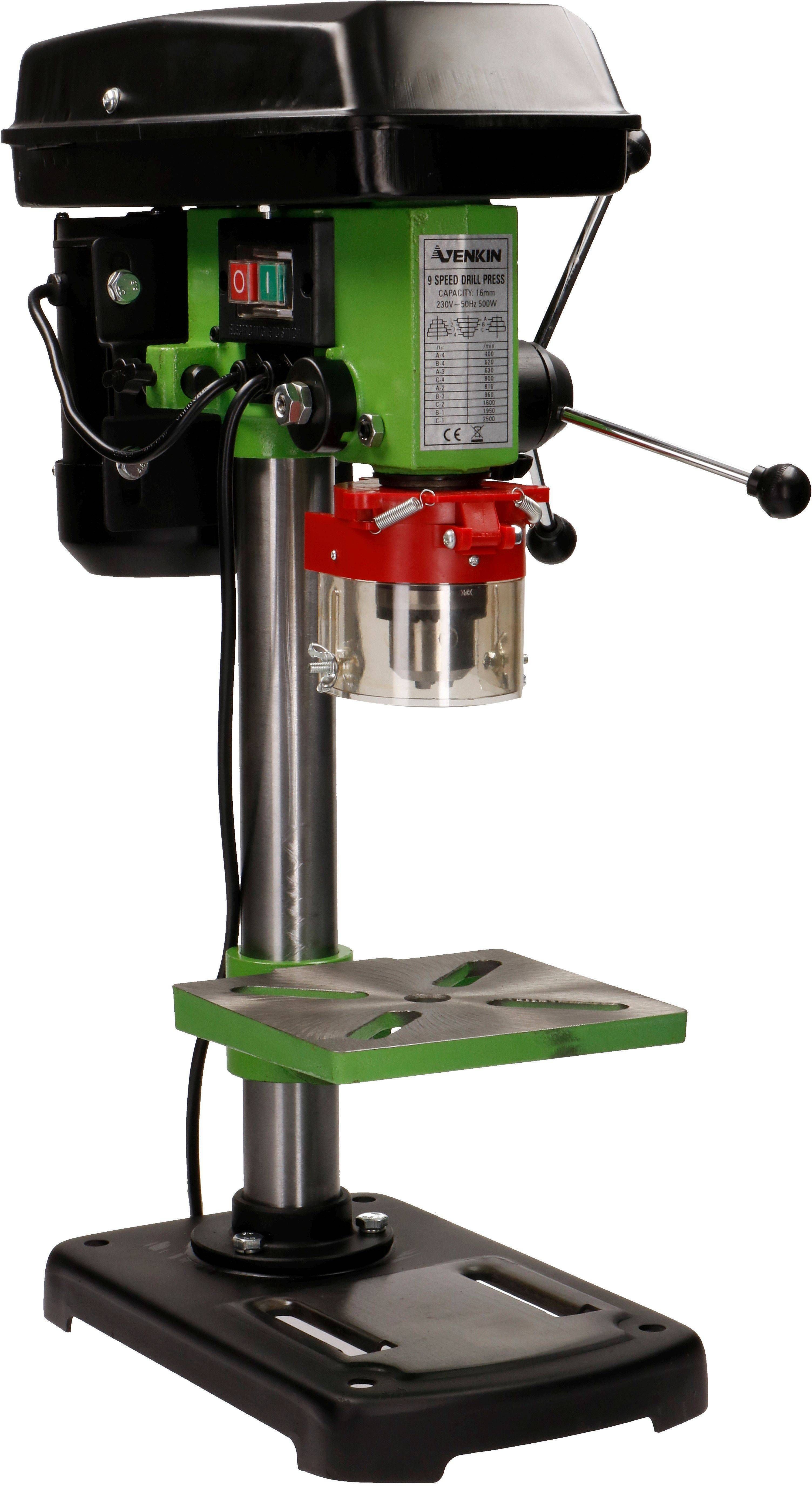 Venkin puurpink võimsusega 500 W. Varustatud 9 kiirusega vahemikus 400-2500 pööret minutis. Tööpinna suurus 170 x 175 mm. Padruni kinnitus võtmega, max läbimõõt 13 mm. Toitekaabli pikkus 2,2 m.
