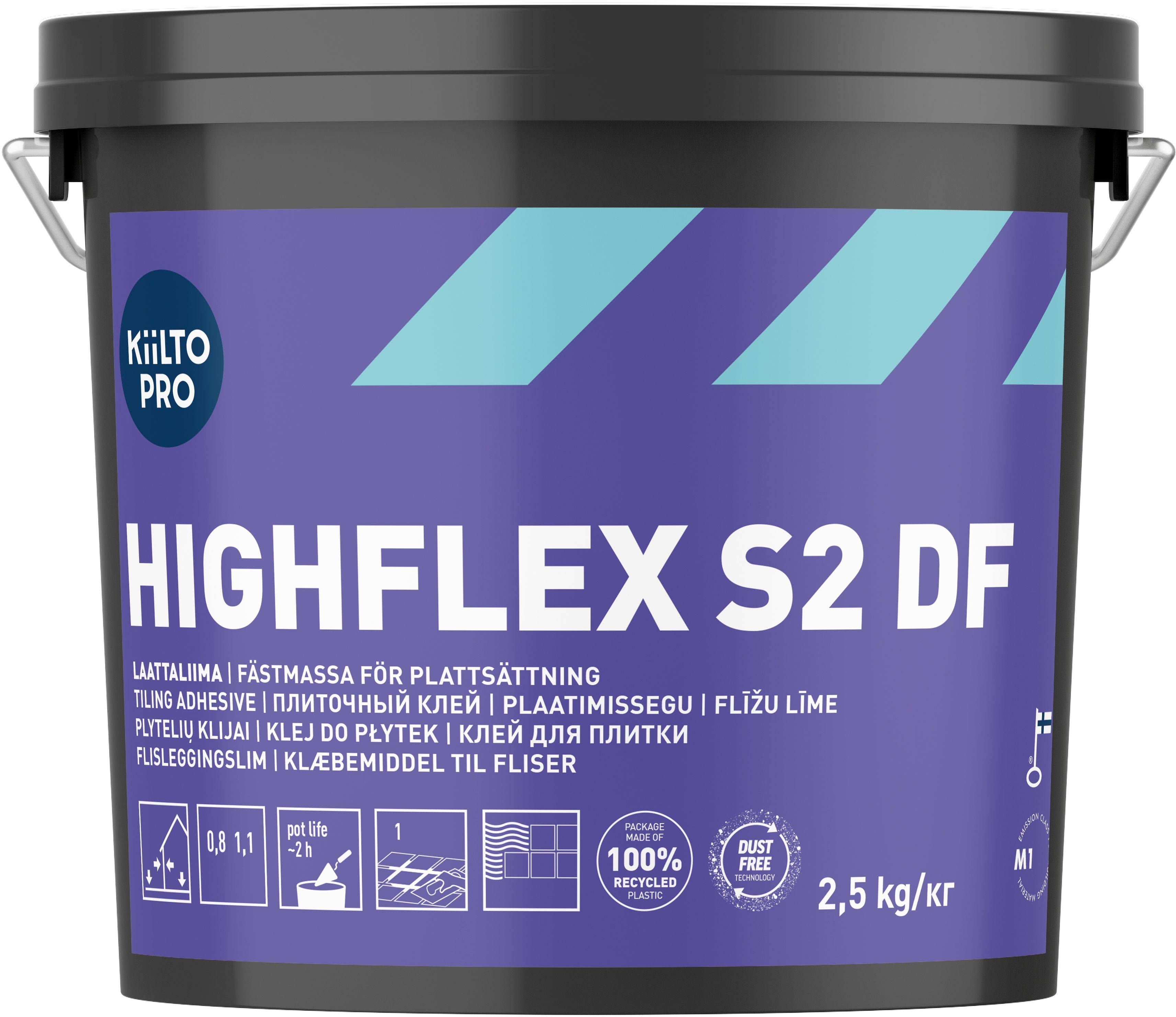 Kiilto plaatimissegu Highflex S2 DF on vähetolmav, kergsideainel, hea elastsusega, valge plaatimissegu. Ideaalne näiteks klaasmosaiik-, looduskivist plaatide, kerisetaguste ja monteeritavate metallist vannitoapaneelide paigaldamiseks. Hea deformatsioonitaluvusega, kuumakindlus + 100°C, kulu 0.8-1.1. kg/m², vuukimine: seinad 12 h, põrandad 24 h, sise- ja välistingimustesse. Pakendi kogus on 2,5 kg.