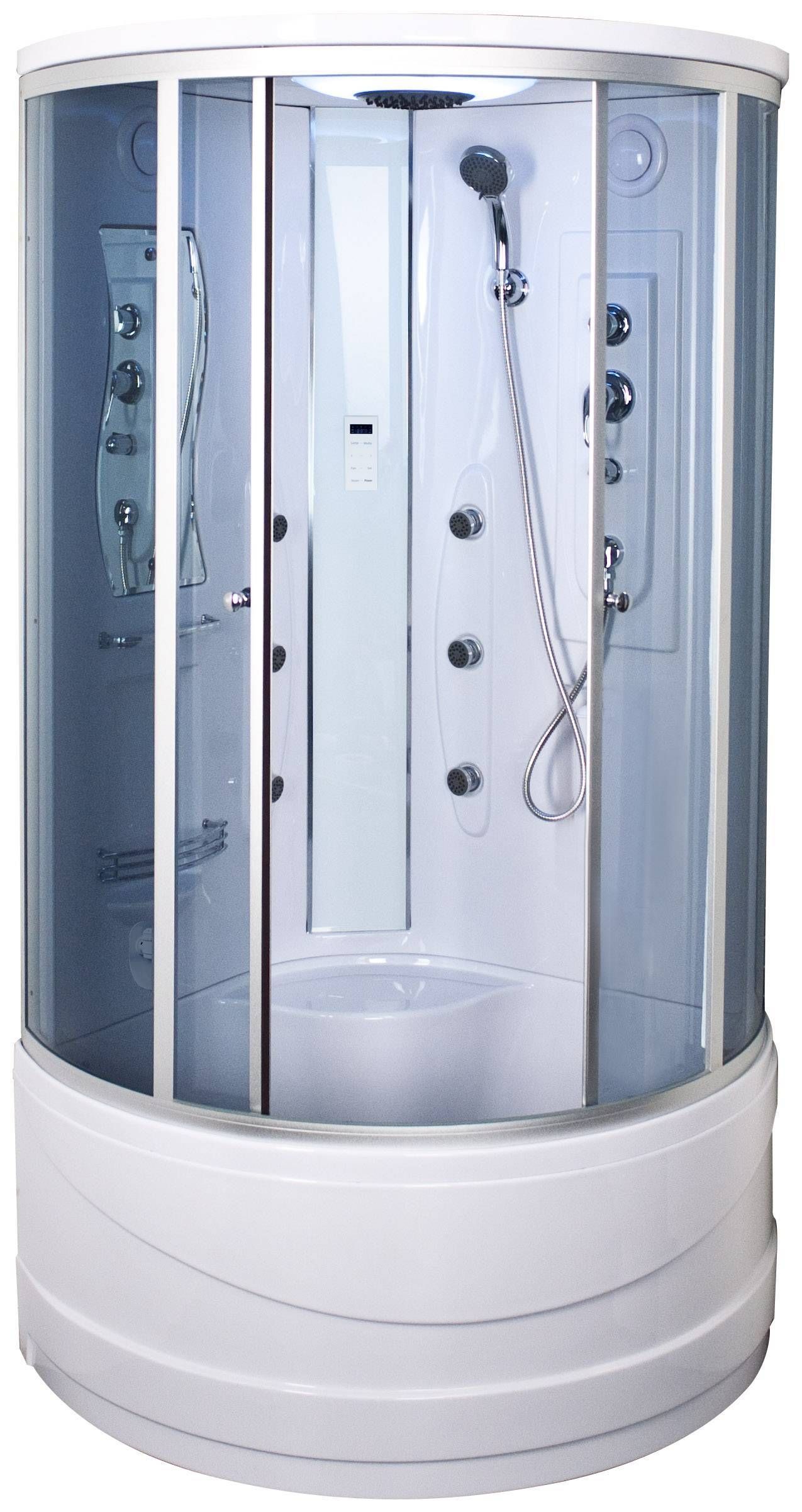 • Kõrge aluse, katuse, 6 mm toonitud turvaklaaside ja hõbedase alumiiniumprofiiliga aurusaun. • Termostaatsegisti, värvimuutev LED-valgustus, Bluetooth ühendus ja puutetundliku LED-ekraaniga juhtpaneel. • 3kW võimsusega aurugeneraator, kuus seljamassaaži düüsi. • 14-päevane tagastusõigus. • HANKIJA LAOST TELLITAV TOODE
