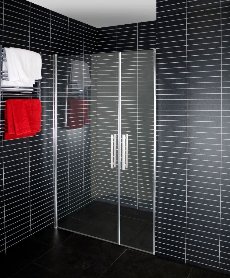 Karastatud 6 mm kirgas turvaklaas, komplektis on magnetsulgur ja vetthülgav põrandaserva tihend. Uksed on vasaku-ja paremakäeliste jaoks ümberpööratavad. Alumiiniumist, hõbedases, metallist tõstehingega seinaprofiilis on kuni 45mm ruumi toruläbiviikude jaoks.