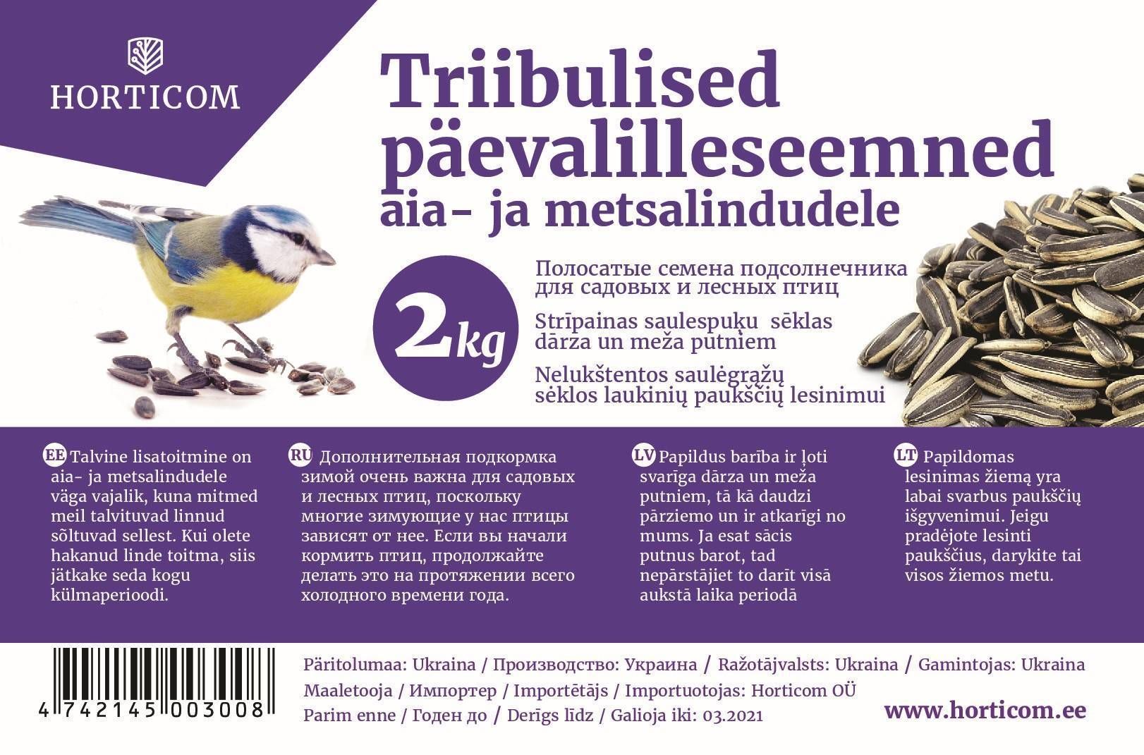 • 100 % päevalilleseemned Horticom lindude talviseks toitmiseks.