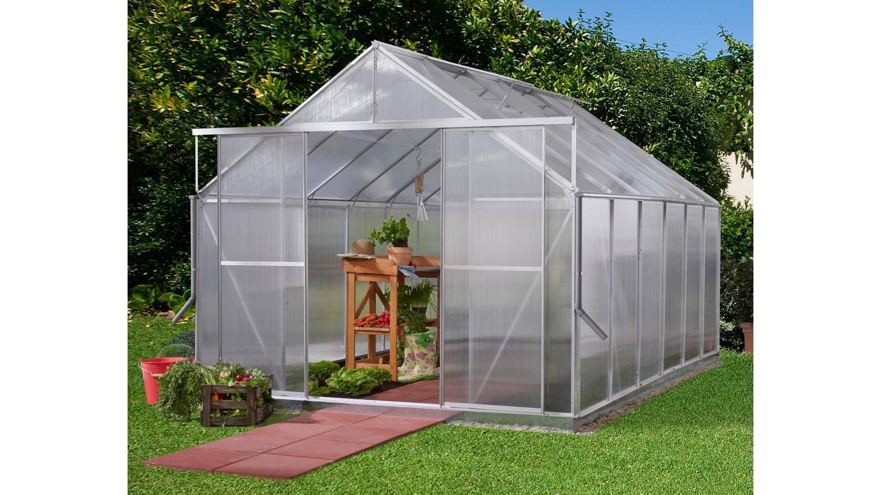 • 4mm UV kaitsega kihtplastikust plaatidega kasvuhoone • Alumiiniumraam, tsingitud terasalus • Kahe poolega lükanduksed, eriti lai ukseava