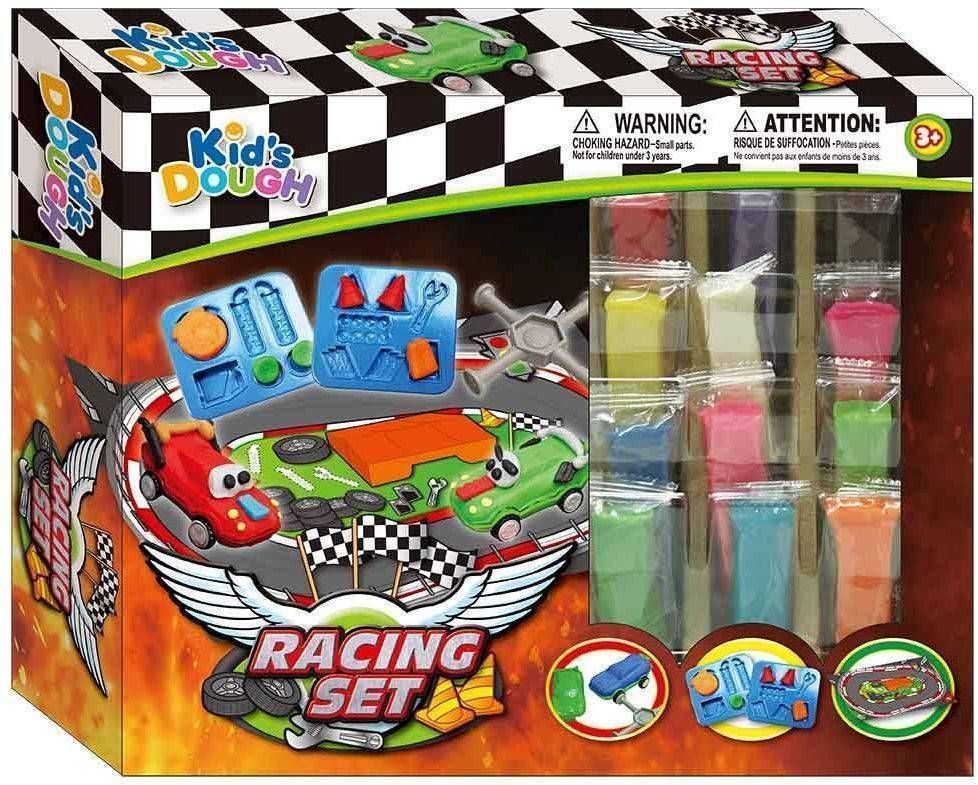 Kid’s Dough komplekti kuulub 12 x 29 g voolimisvaha, 12 x väikest kotti, 2 x autot, 1 x tööriist, 1 x rallirada.