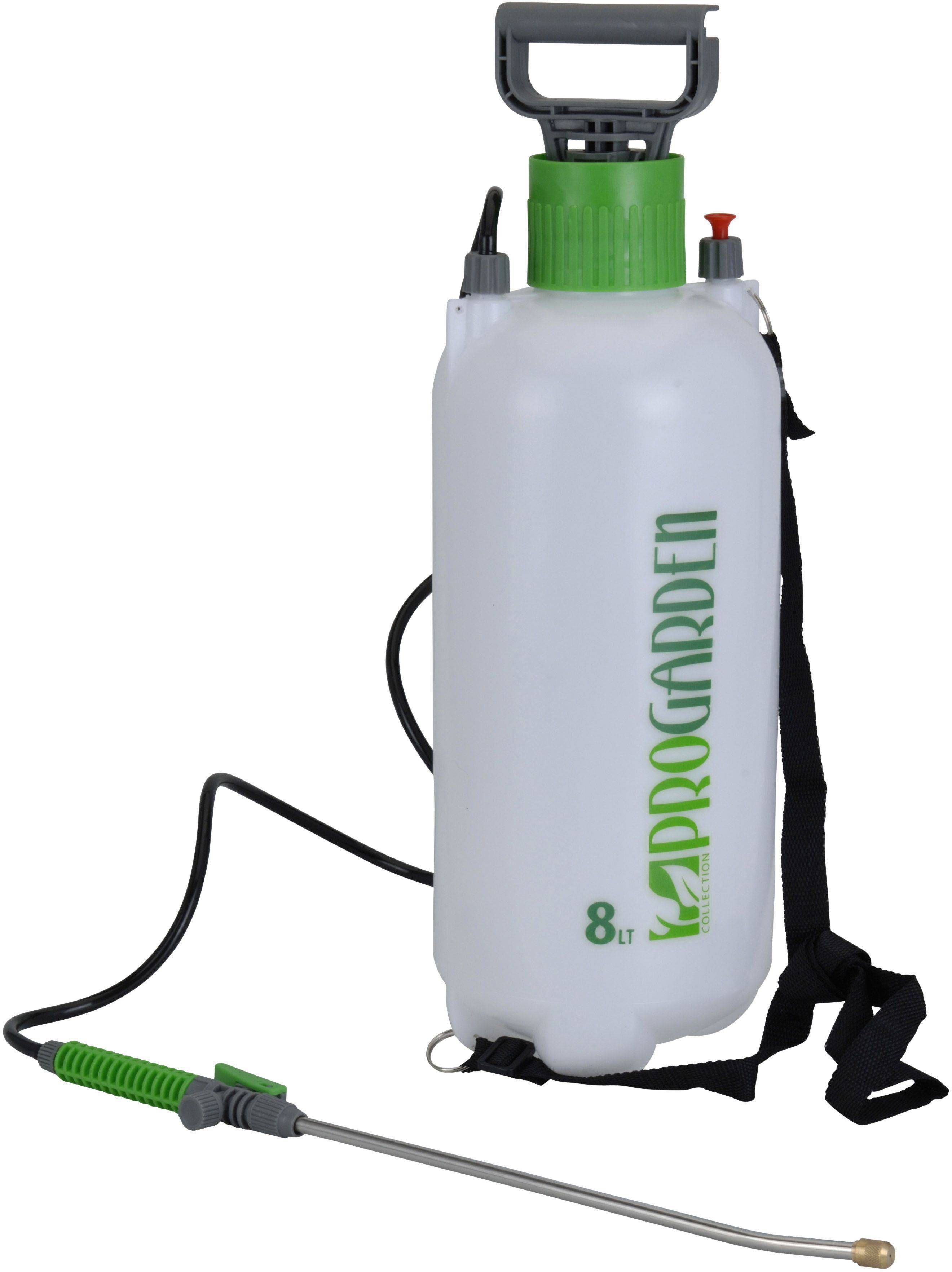 8-liitrine pumbaga surveõhuga aiaprits. Valmistatud roostevabast terasest. Aiapritsil on kanderihm mugavaks kandmiseks.