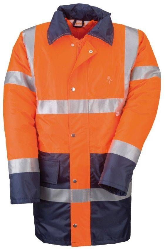 Vee-, tuule- ja külmakindel kõrgnähtav pikk jope, millel on veekindlad kokku "keevitatud" õmblused. Lisaks on jopel laiad 5 cm helkurribad nii ees kui taga, kokku volditav kapuuts kõrge krae sees, ees kahepoolse kelguga ja trukkidega kinnitatava katteliistuga lukk, suured klapiga taskud, varrukate see pehmendusega materjal mugavuse tagamiseks. Tööjakk on oranži värvi ja suurus XXXL.