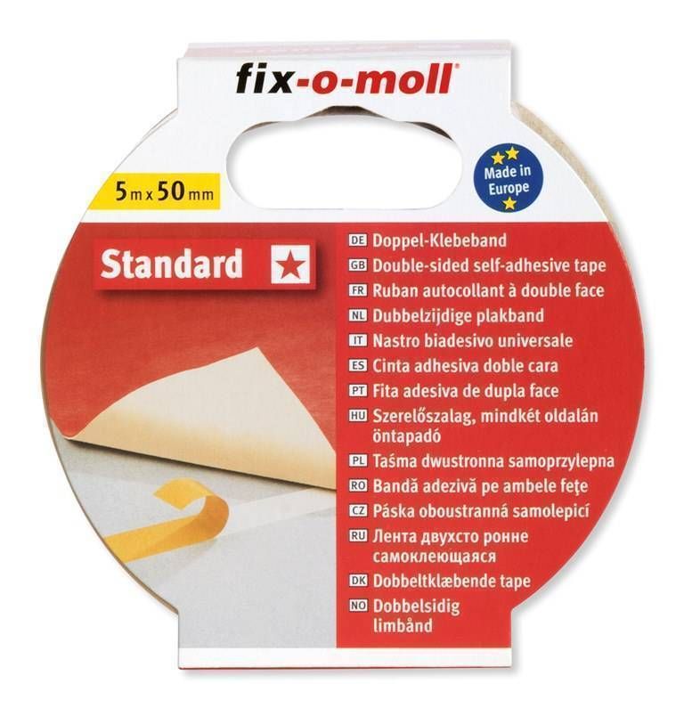 Fix-o-molli kahepoolne paigaldusteip Standard on mõeldud professionaalseks kasutuseks vaipade kinnitamisel. Paigaldusel puhastada põrand. Teibi pikkus 5 m, laius 50 mm.