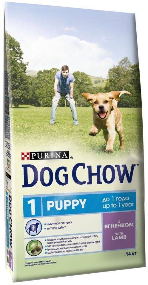 Purina DOG CHOW Puppy lambaga, 14 kg. Täissööt kutsikatele, samuti sobilik tiinetele ja imetavatele koertele ning täiskasvanud kääbuskasvu koertele. Koostises on teraviljad, liha ja loomsed saadused (8%*), aedviljaproteiinide ekstraktid, õlid ja rasvad, taimset päritolu saadused, aedviljad (1.1% kuivatatud sigurijuur), mineraalained. Lisatoitained: IU/kg: Vit. A: 22600; Vit. D3: 1300; Vit. E: 105; mg/kg: Fe (E1): 286; I (E2): 3.6; Cu (E4): 41; Mn (E5): 21.9; Zn (E6): 462; Se (E8): 0.50. Antioksüdantidega. Analüütilised koostisosad: proteiin: 28.0%, rasvasisaldus: 14%, toortuhk: 7.5%, toorkiudained: 2.5%, DHA 0.05%.