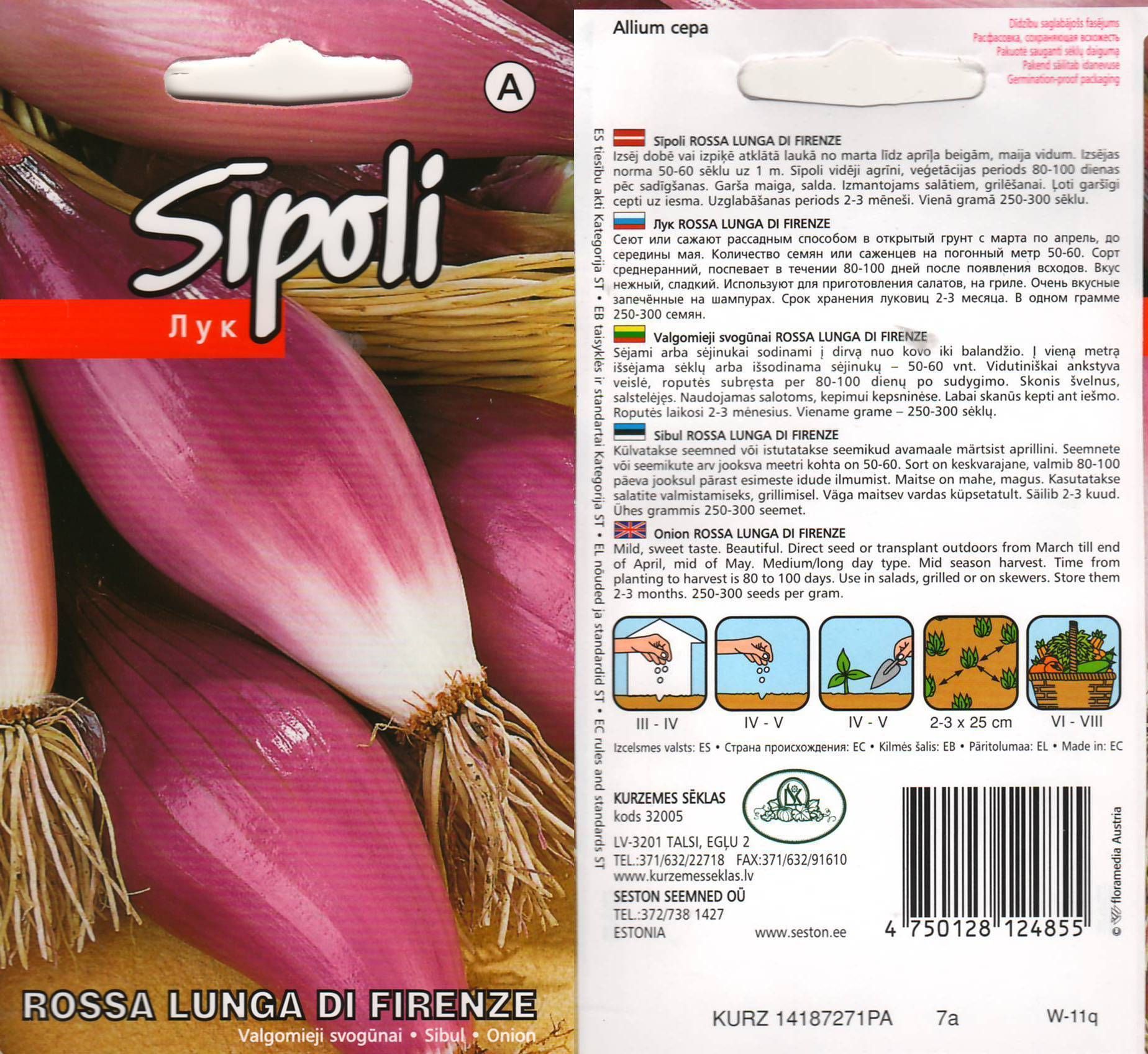 • Seemned külvatakse või istutatakse avamaale märtsist aprillini • Seemnete või seemikute arv jooksva meetri kohta on 50-60 • Valmib 80-100 päeva jooksul pärast esimeste idude ilmumist • Kasutatakse salatite valmistamiseks, grillimisel • Säilib 2-3 kuud, ühes grammis 250-300 seemet • 14-päevane tagastusõigus.