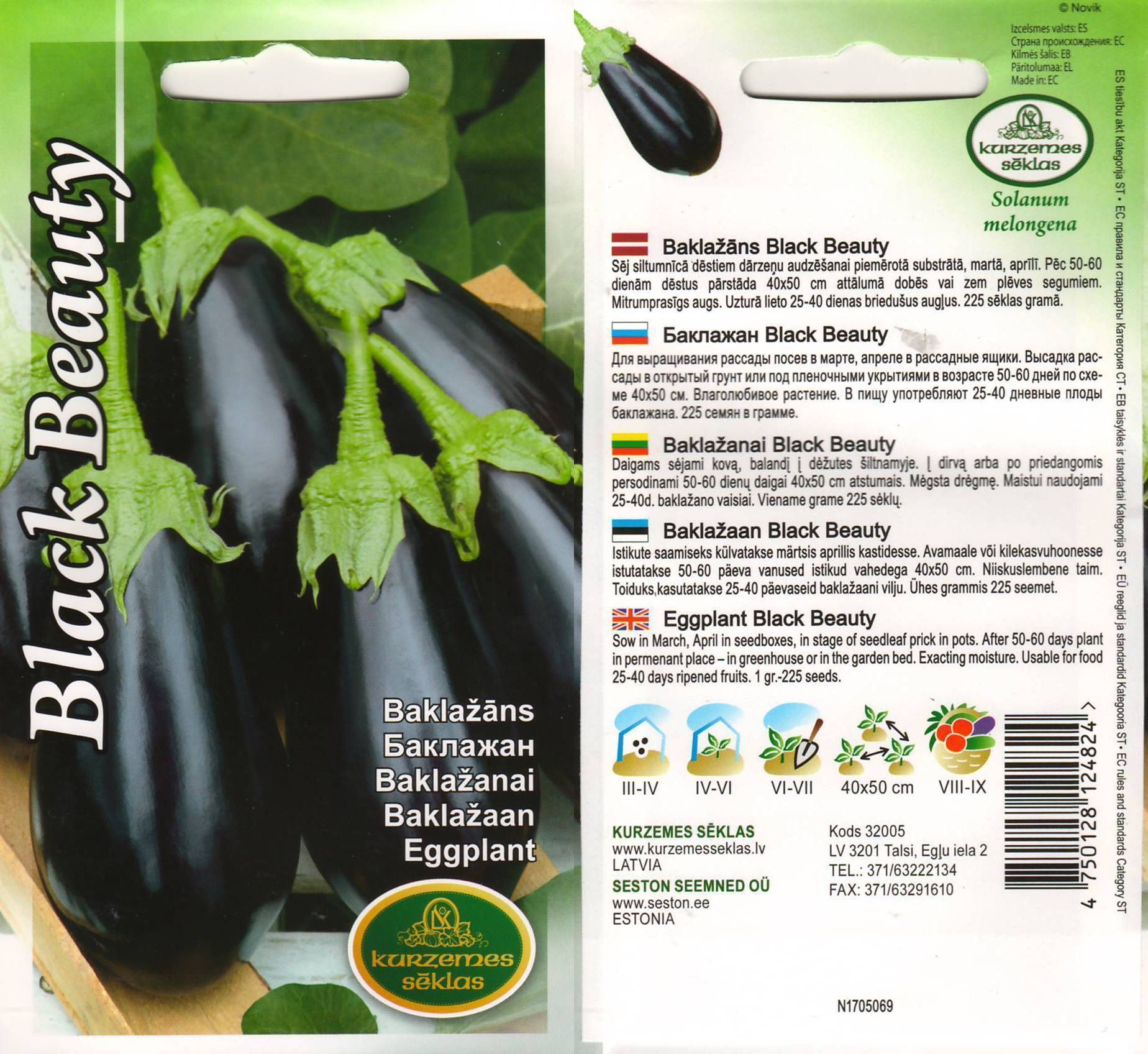 • Külvatakse märtsis aprillis kastidesse • Avamaale või kilekasvuhoonesse istutatakse 50-60 päeva vanused istikud vahedega 40 x 50 cm • Toiduks kasutatakse 25-40 päevaseid baklažaani vilju • 14-päevane tagastusõigus.