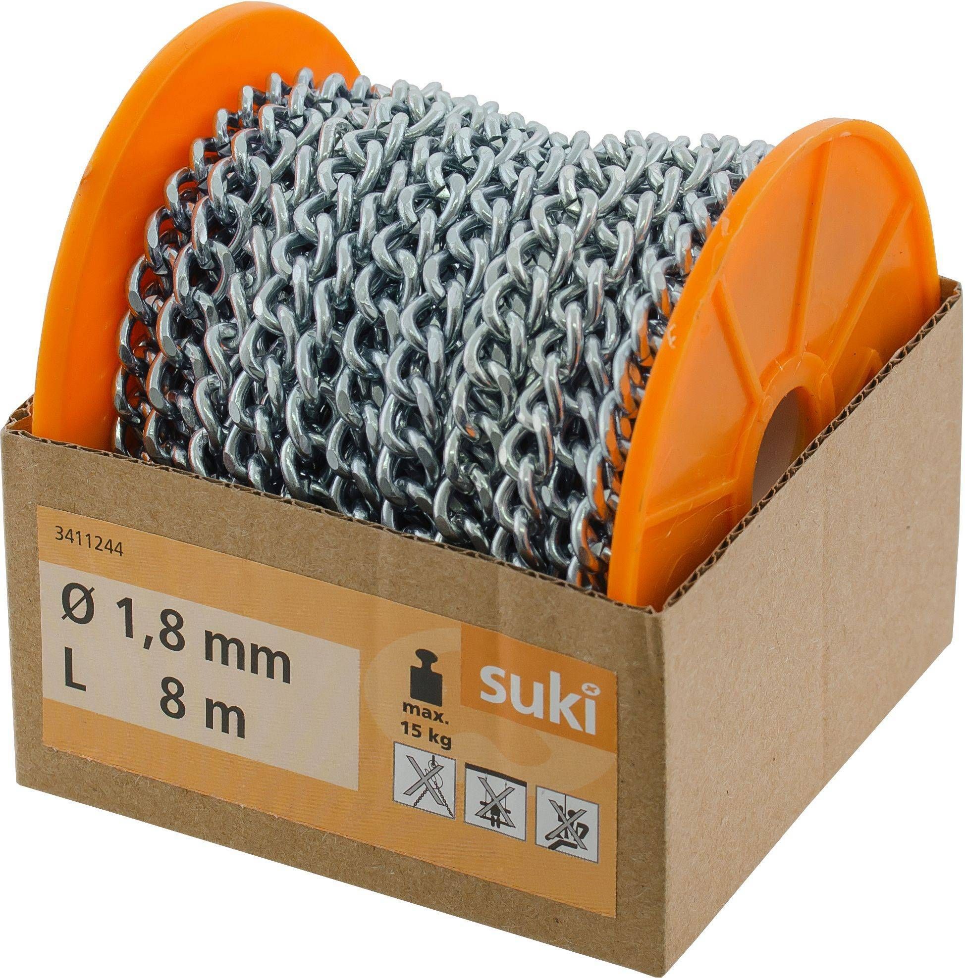 • Suki kett (1,8 mm) on tsinkkattega. • Keti põhimaterjal on teras. • Ohutu töötamise koormus 15 kg, purunemise koormus 50 kg. • 14-päevane tagastusõigus.